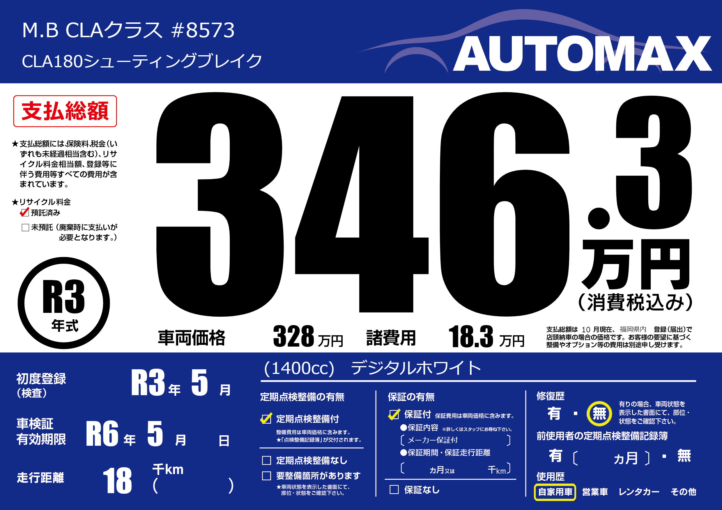 | 車名 | M.B CLAクラス #8573 | グレード ミッション 排気量 |