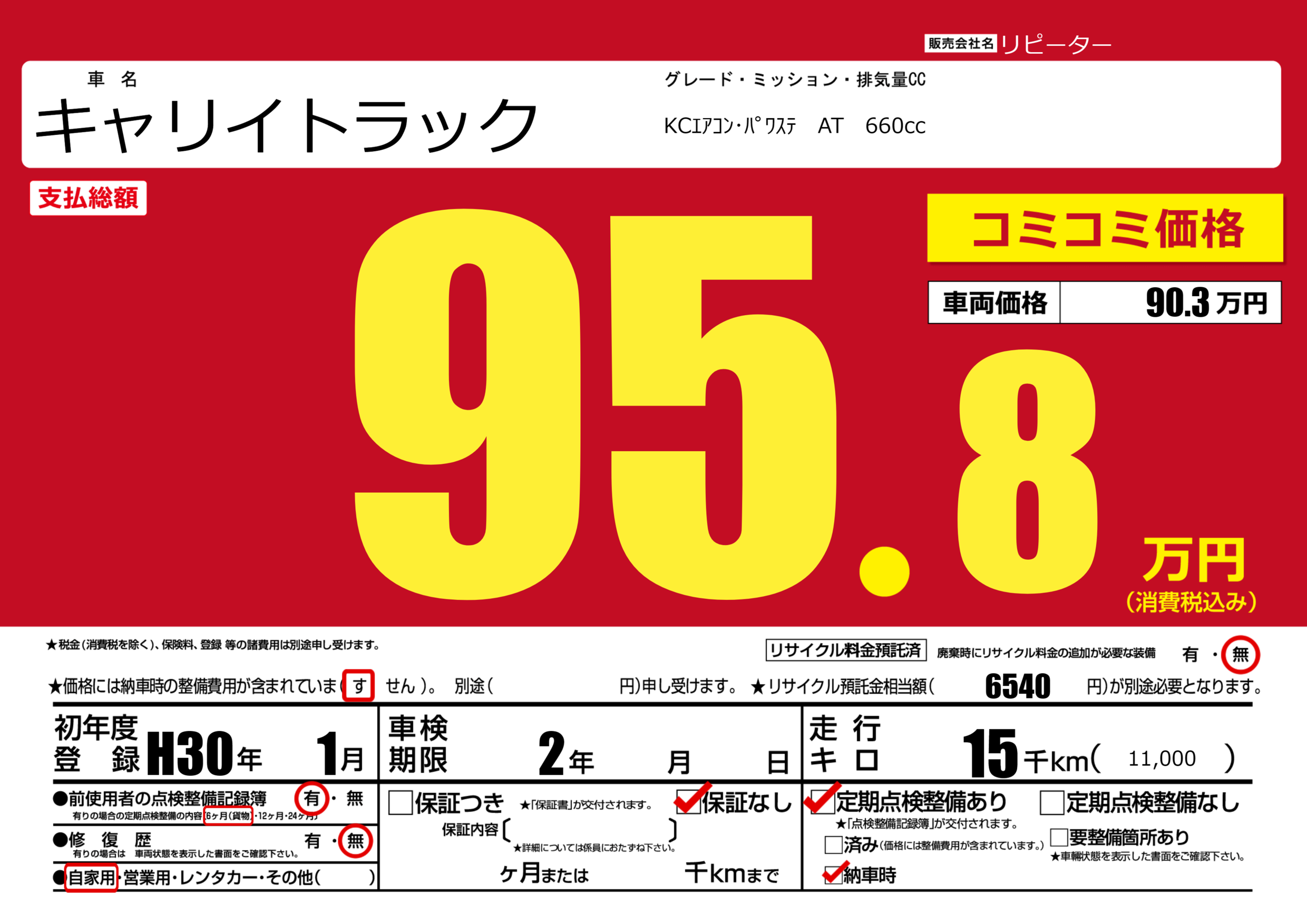 | 定期点検整備 | 定期点検整備あり 納車時あり | ||