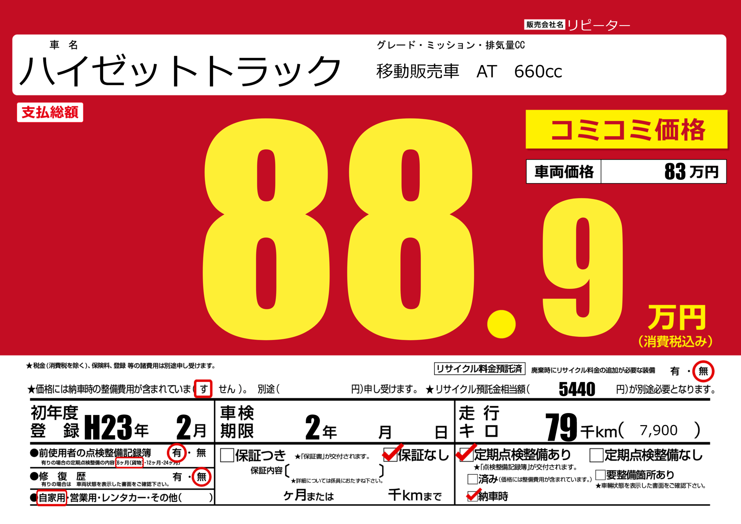 | 定期点検整備 | 定期点検整備あり 納車時あり | ||