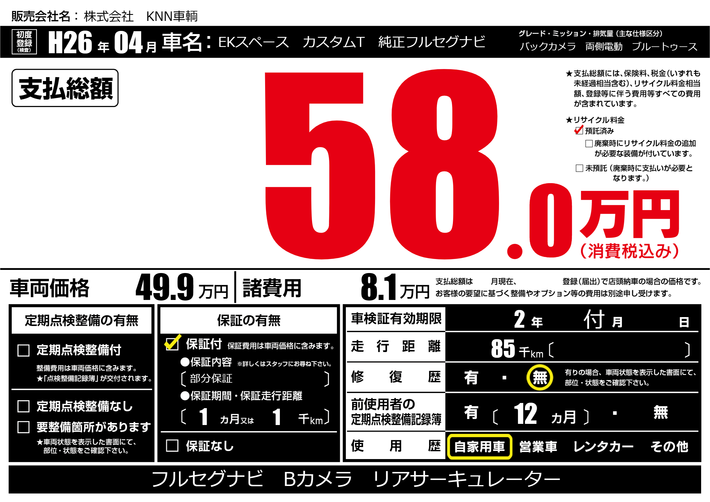 | 車名 | EKスペース カスタムT 純正フルセグナビ | グレード ミッション 排気量 |