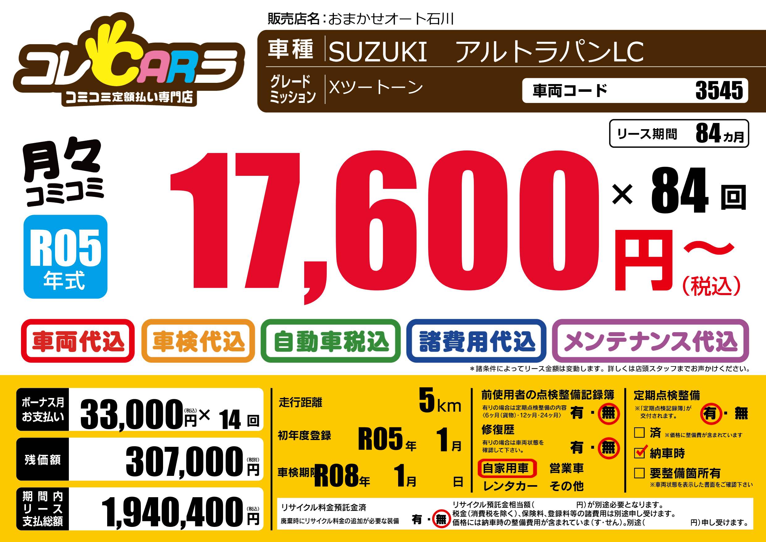 | 初年度登録 | R05年1月 | ||