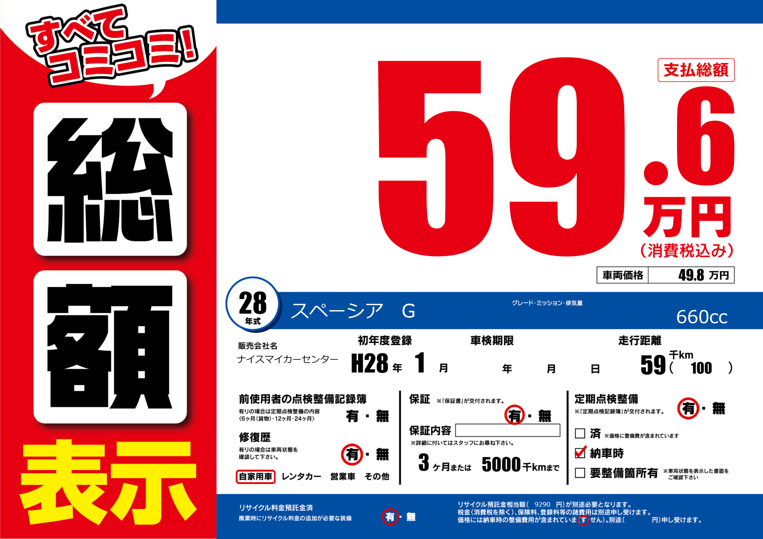 | 定期点検整備 | 定期点検整備あり 納車時あり | ||