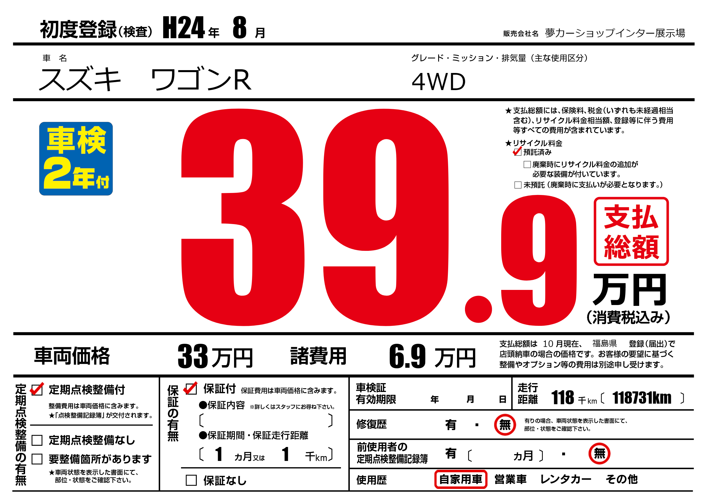 | 定期点検整備 | 定期点検整備あり | ||