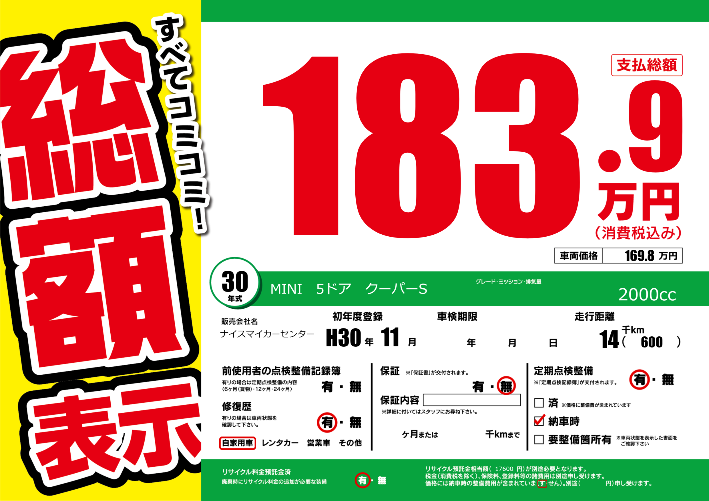 | 定期点検整備 | 定期点検整備あり 納車時あり | ||
