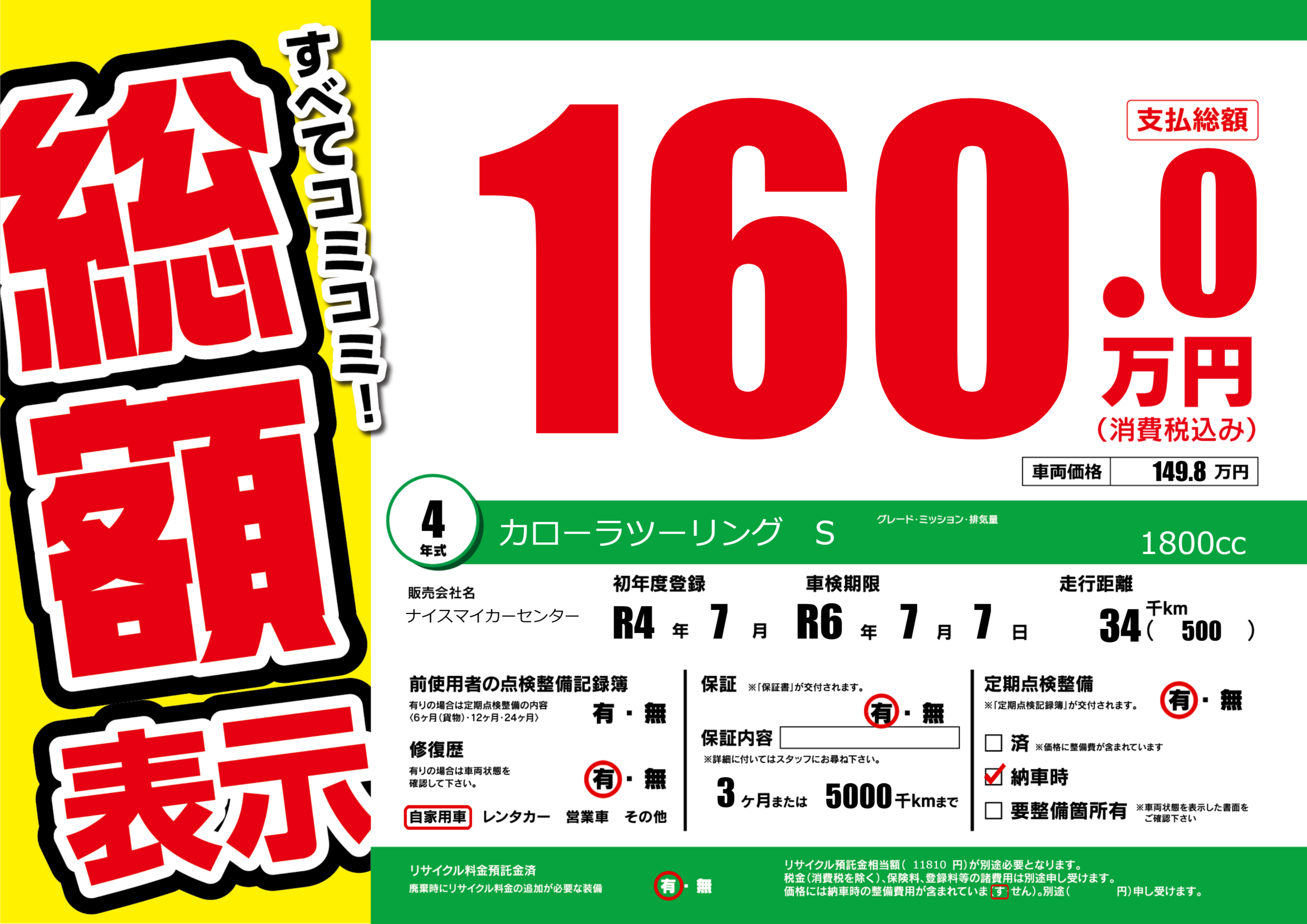 | 定期点検整備 | 定期点検整備あり 納車時あり | ||