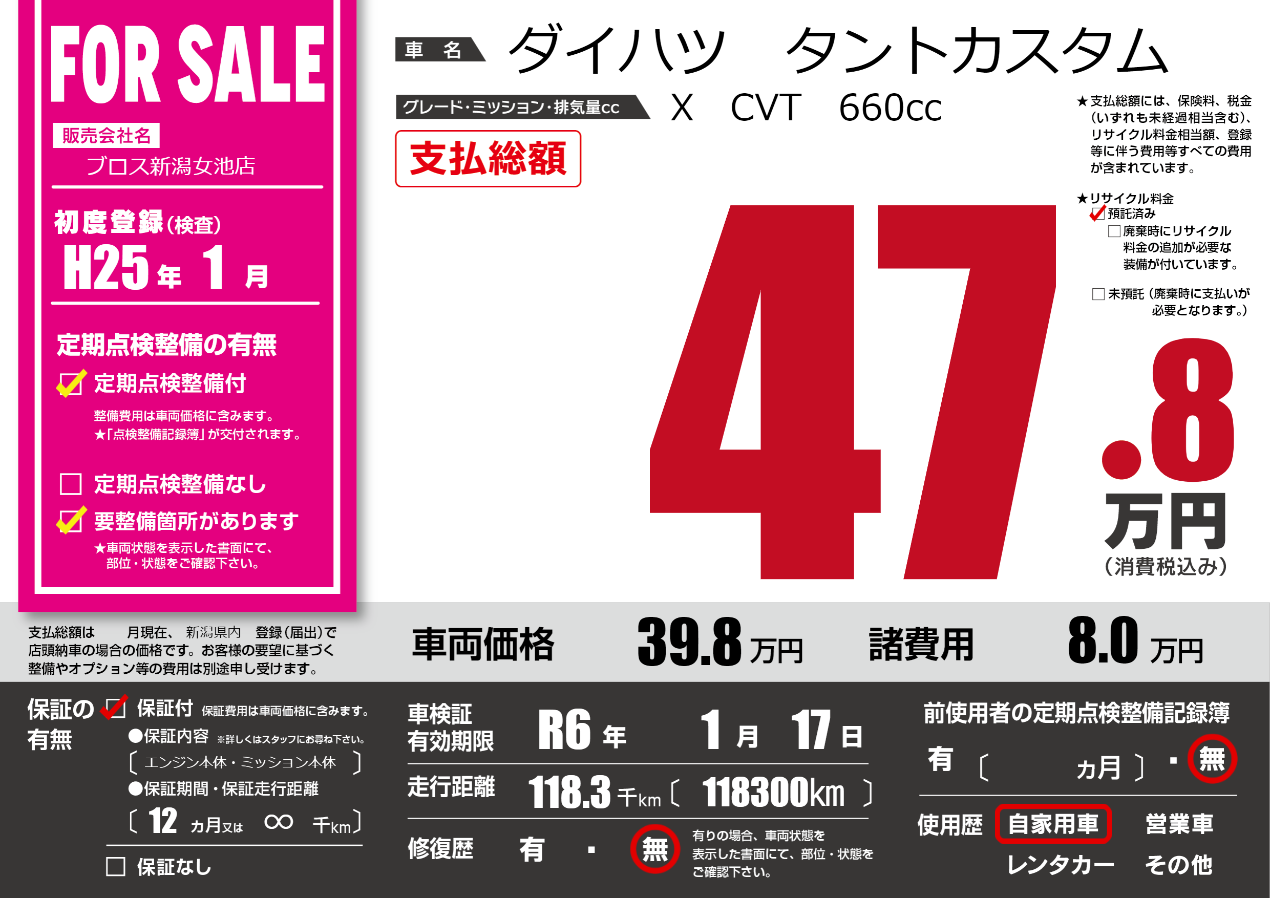 | 走行キロ | 11.8万km | 初年度登録 | H25年1月 |