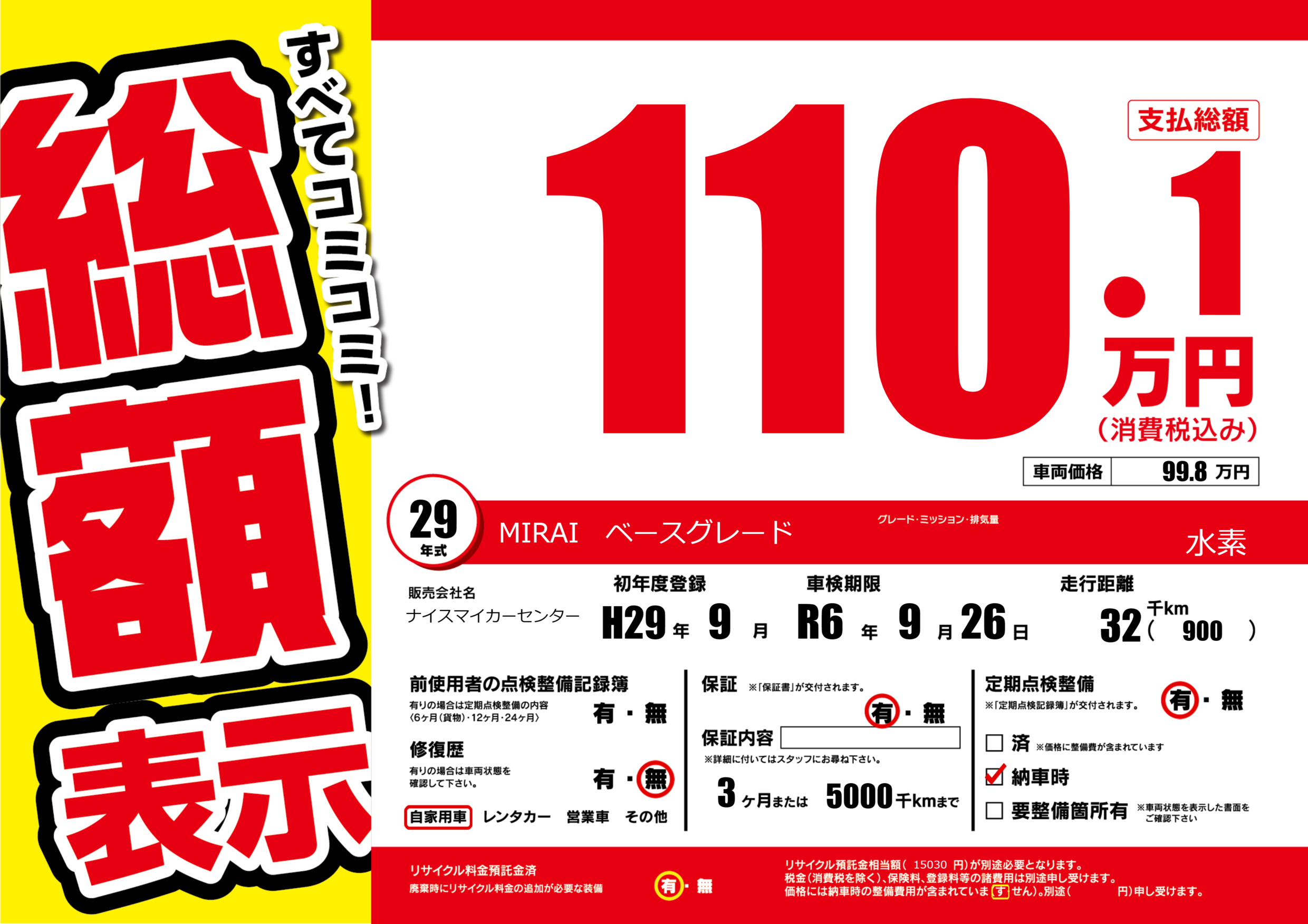 | 定期点検整備 | 定期点検整備あり 納車時あり | ||