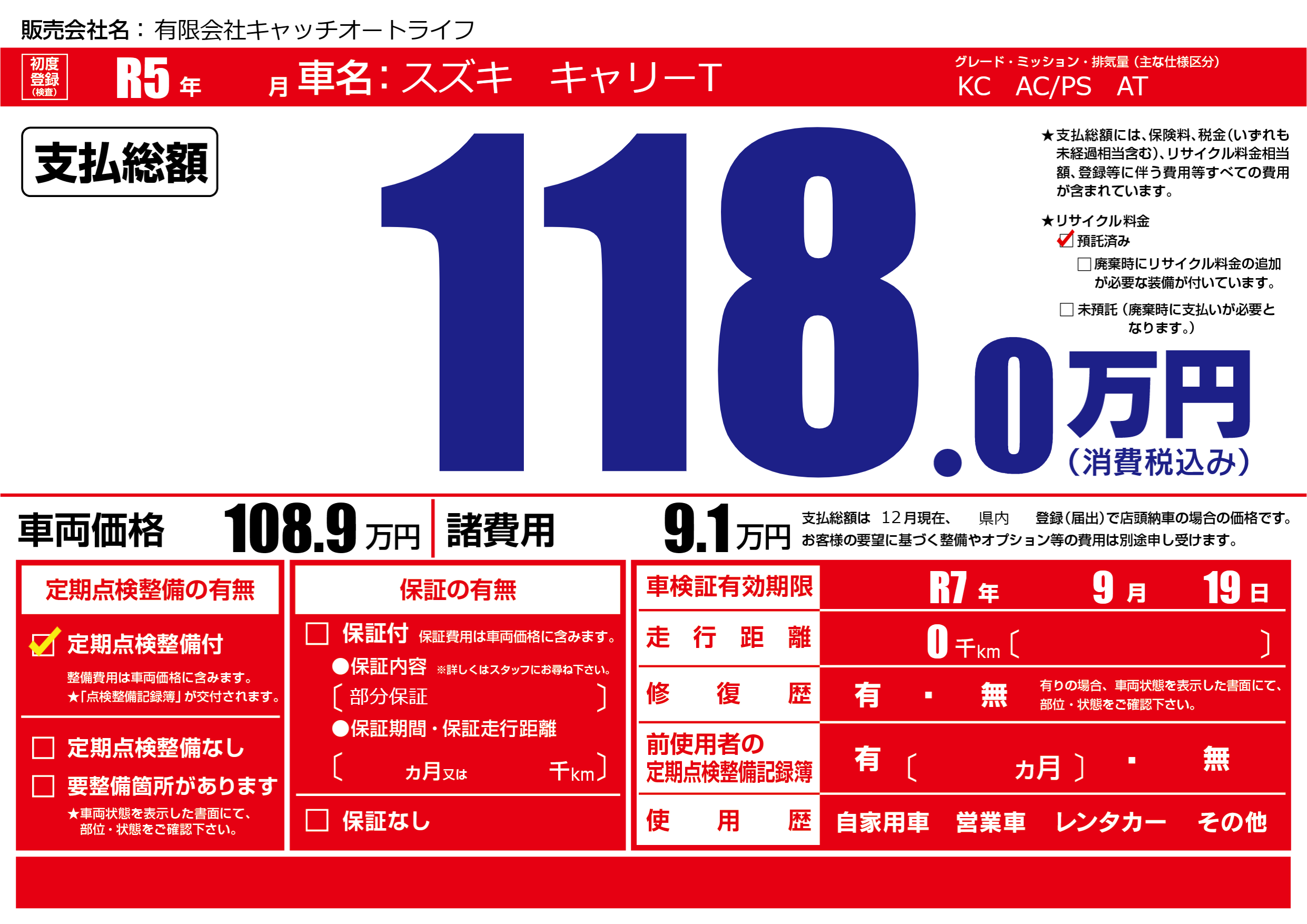 なし | 車検制限 | R7年9月19月 |