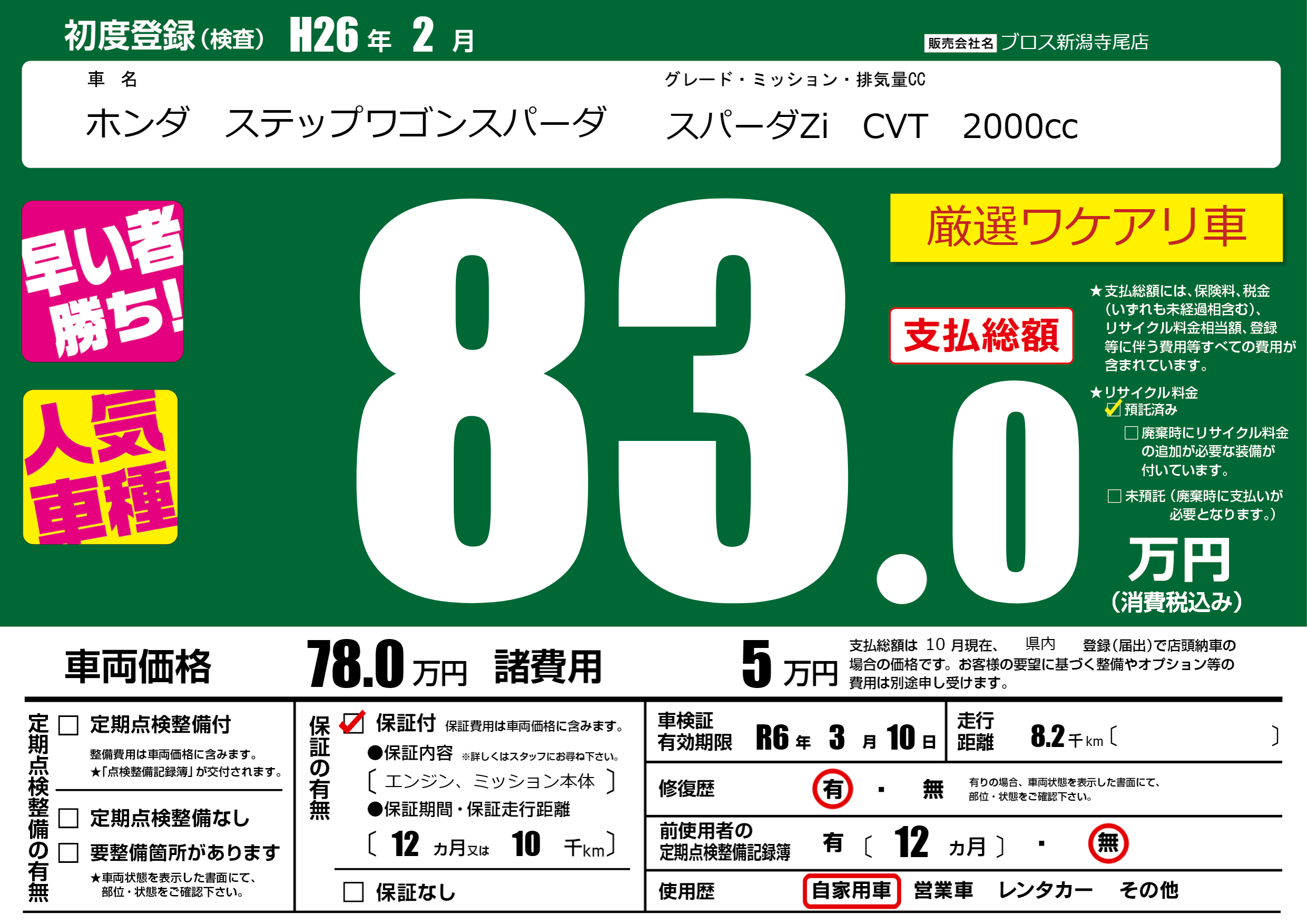 初年度登録 H26年2月