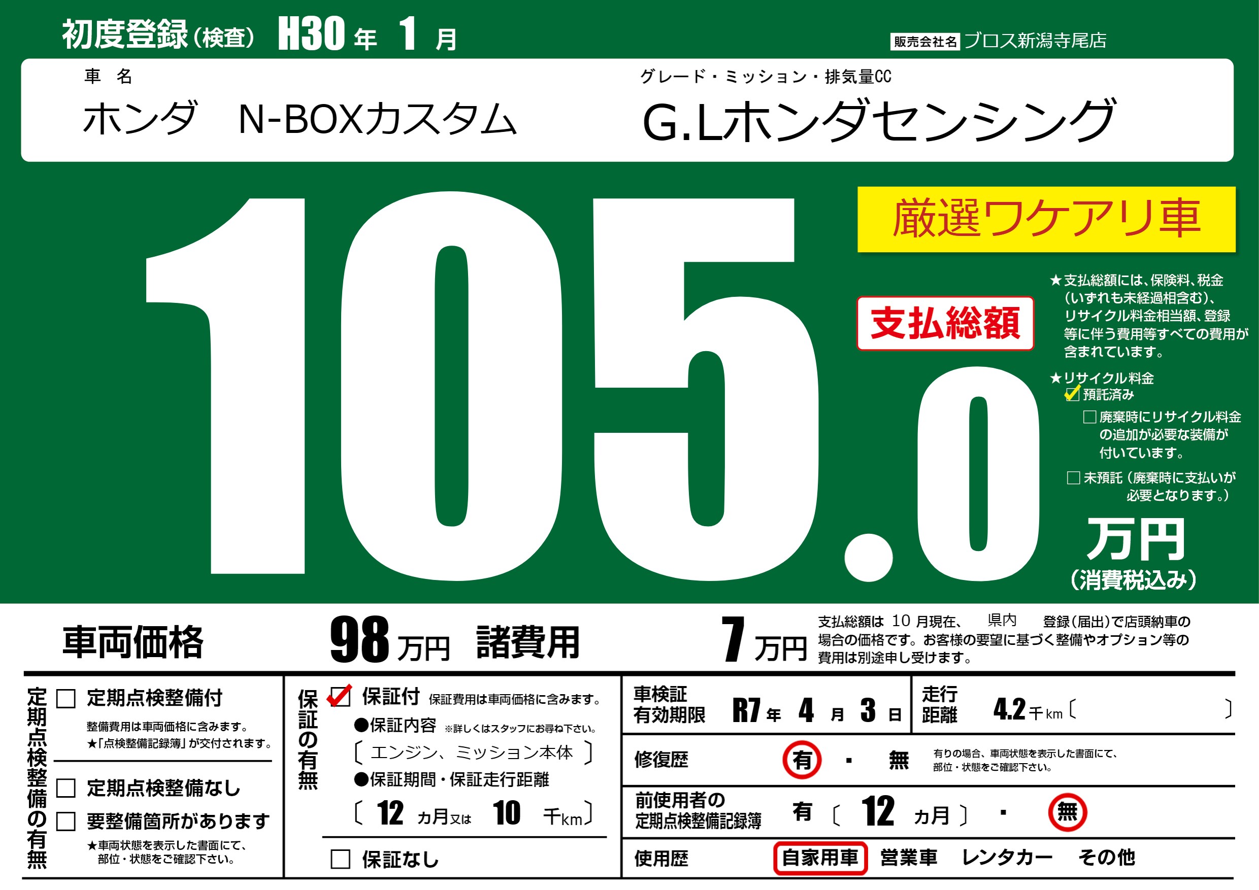初年度登録 H30年1月