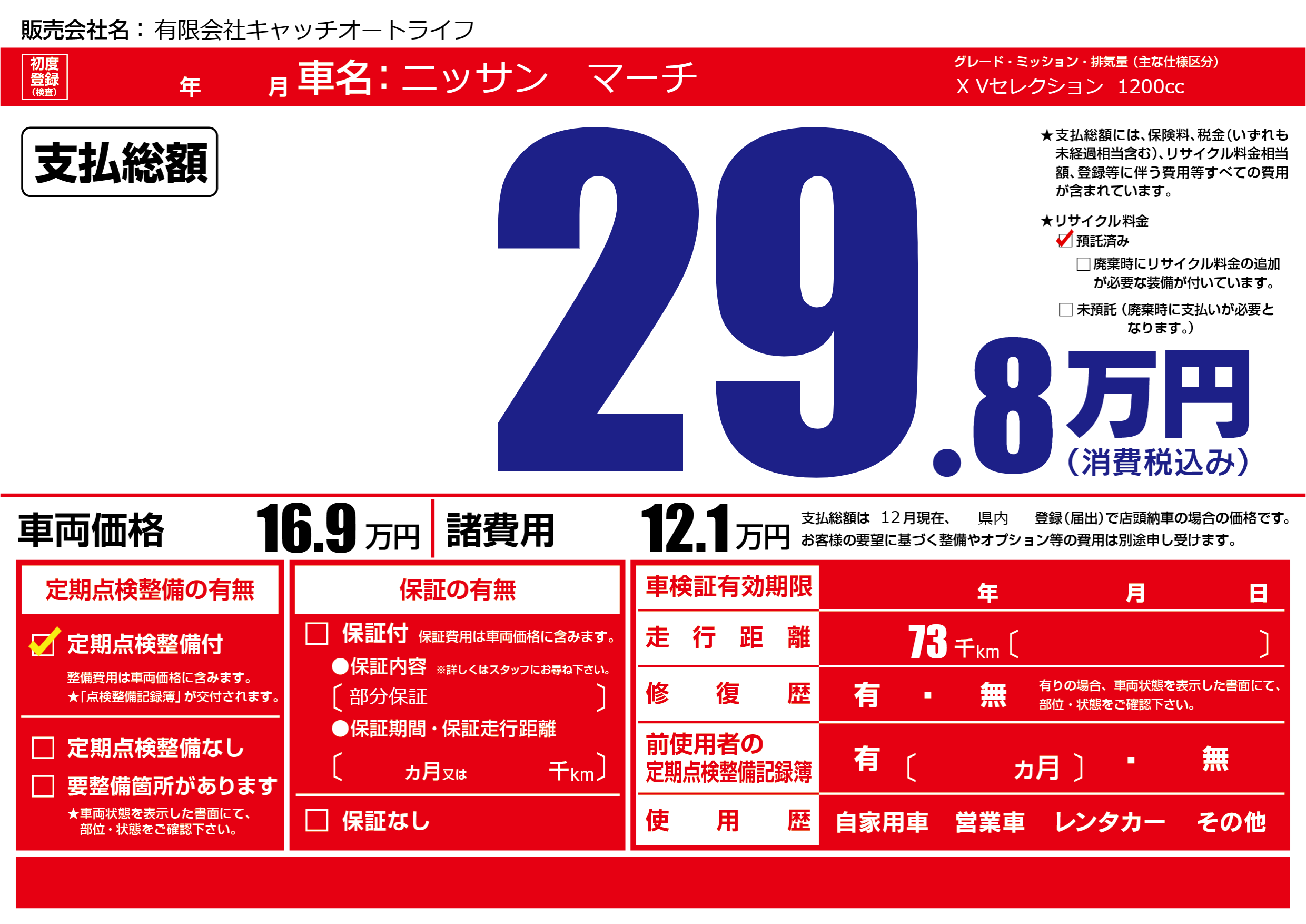 | 車名 | ニッサン マーチ | グレード ミッション 排気量 |