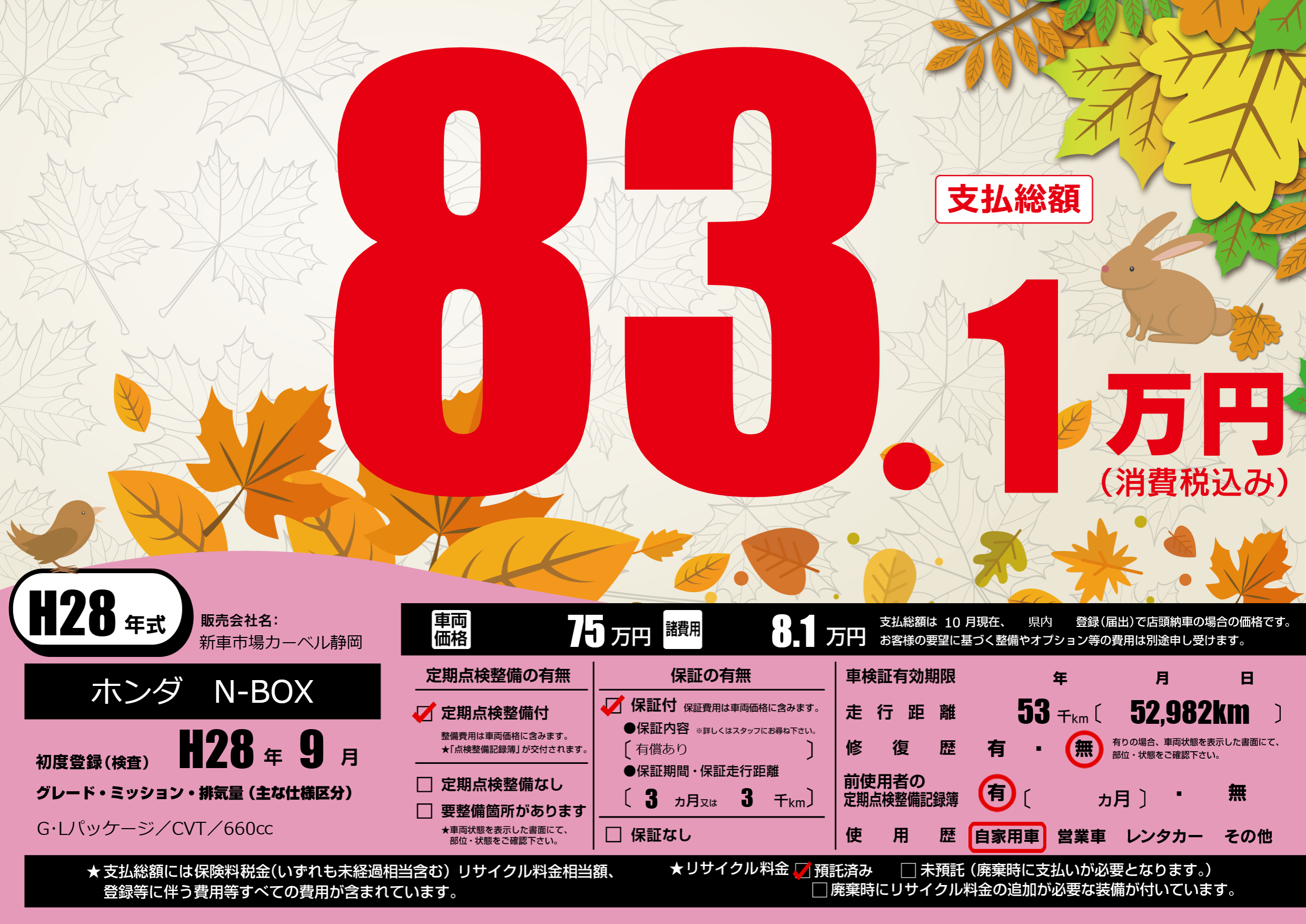 | 走行キロ | 5.3万km | 初年度登録 | H28年9月 |