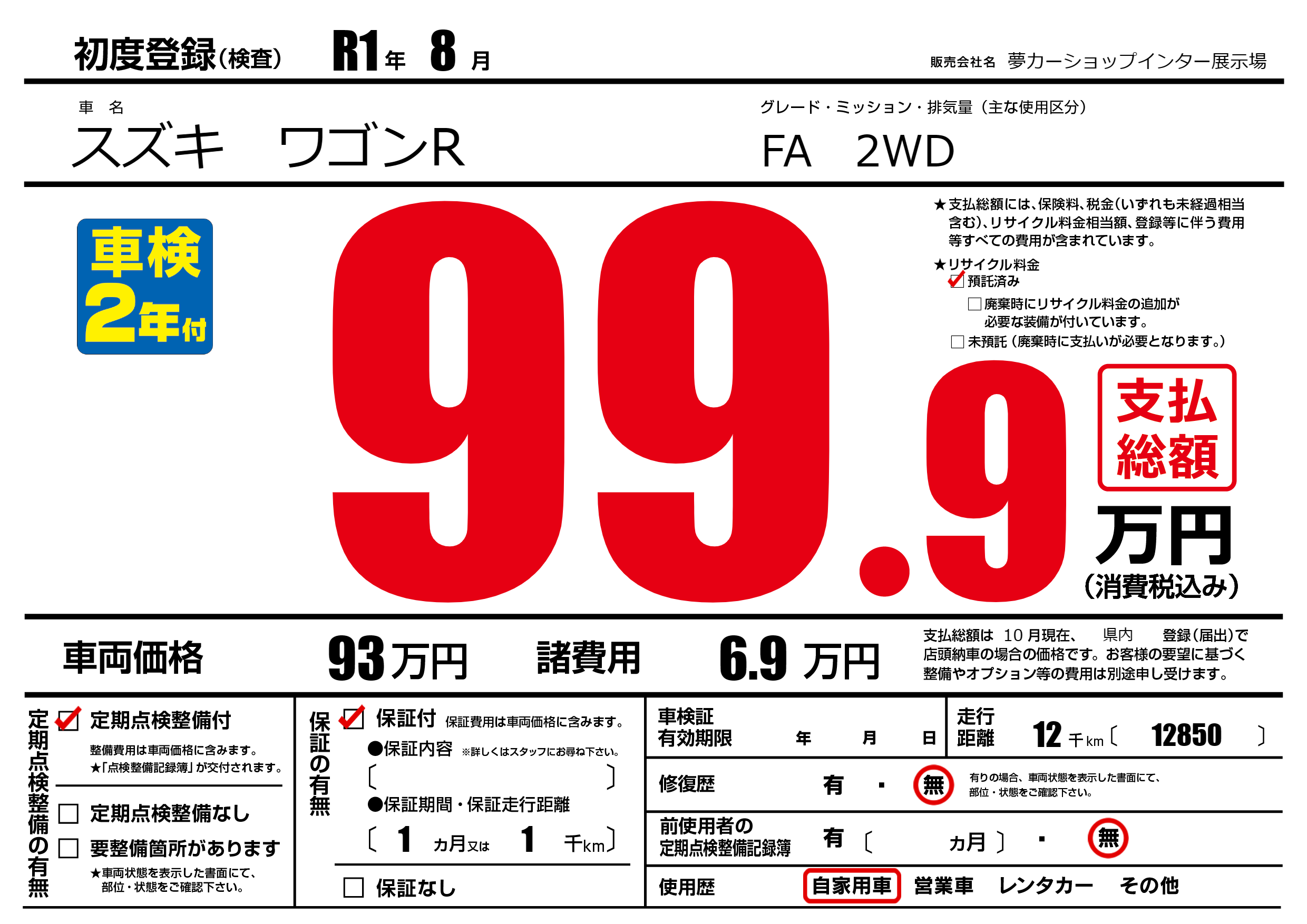 | 定期点検整備 | 定期点検整備あり | ||