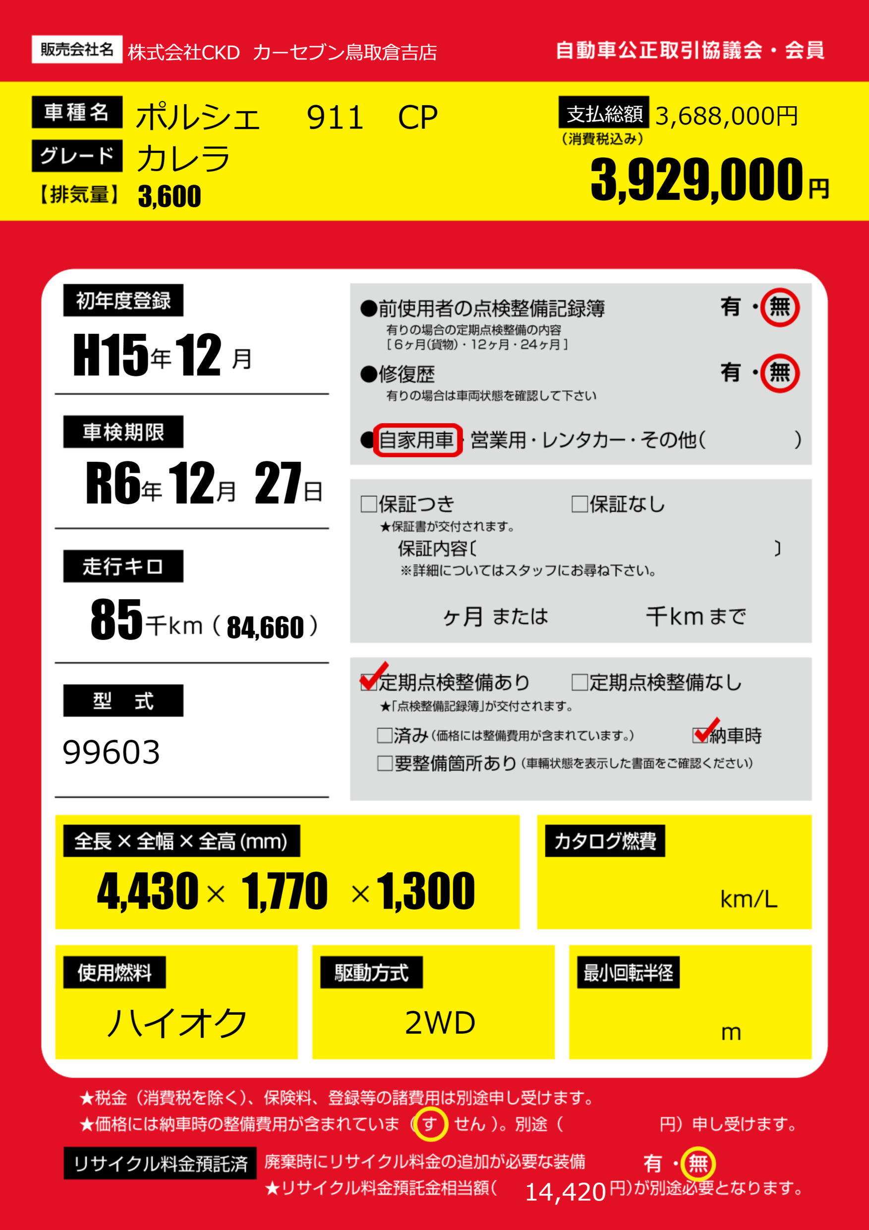 | 初年度登録 | H15年12月 | ||