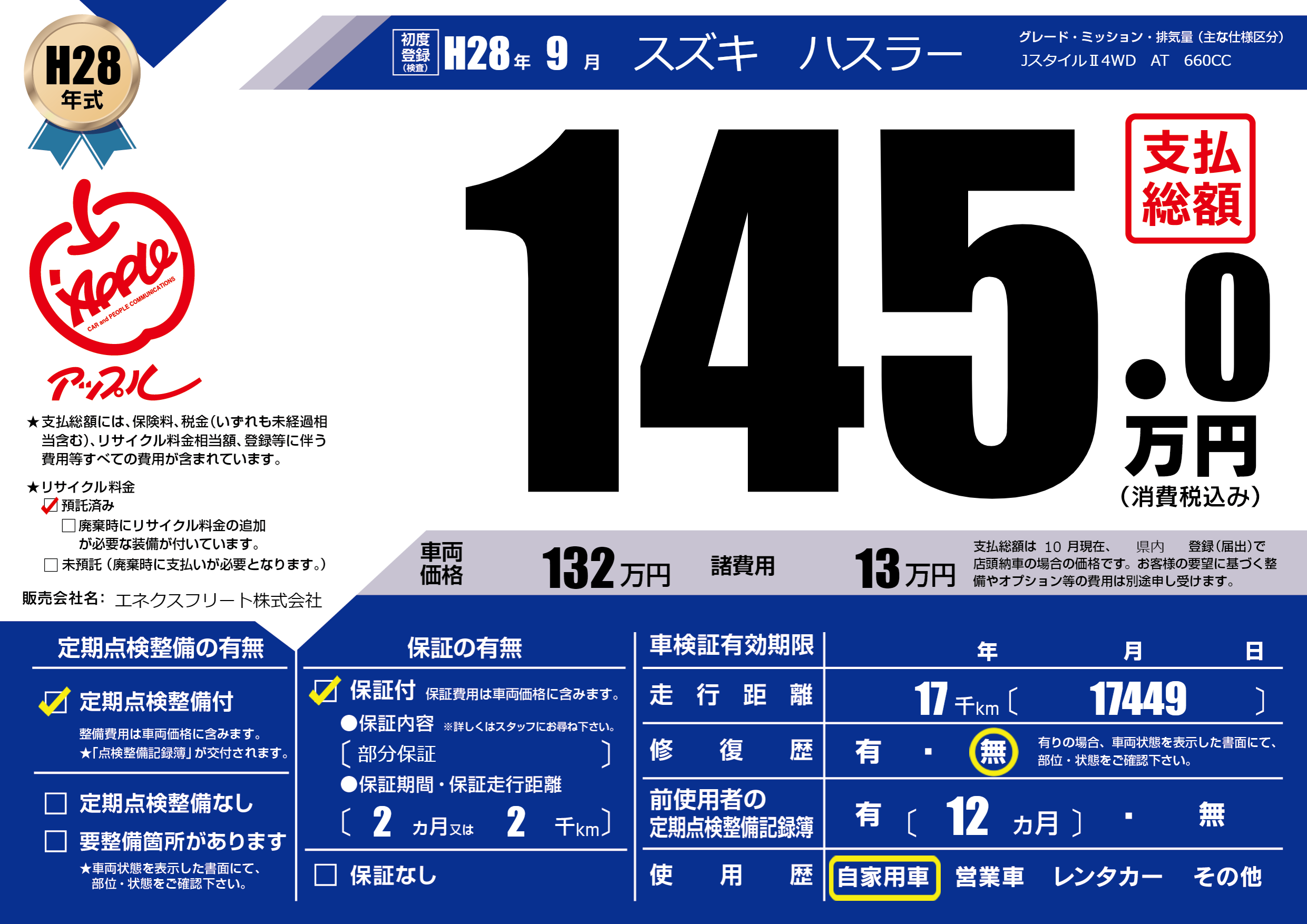 | 定期点検整備 | 定期点検整備あり | ||