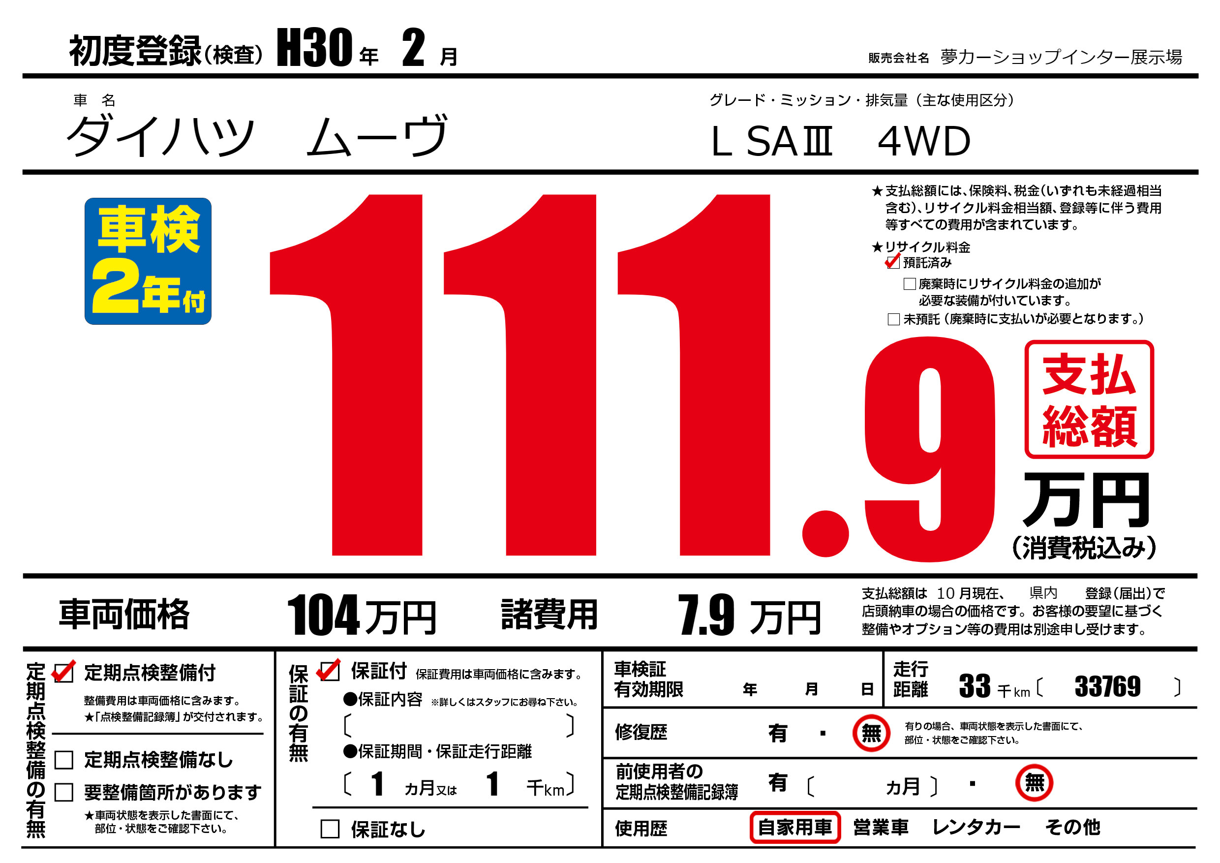 | 初年度登録 | H30年2月 | ||
