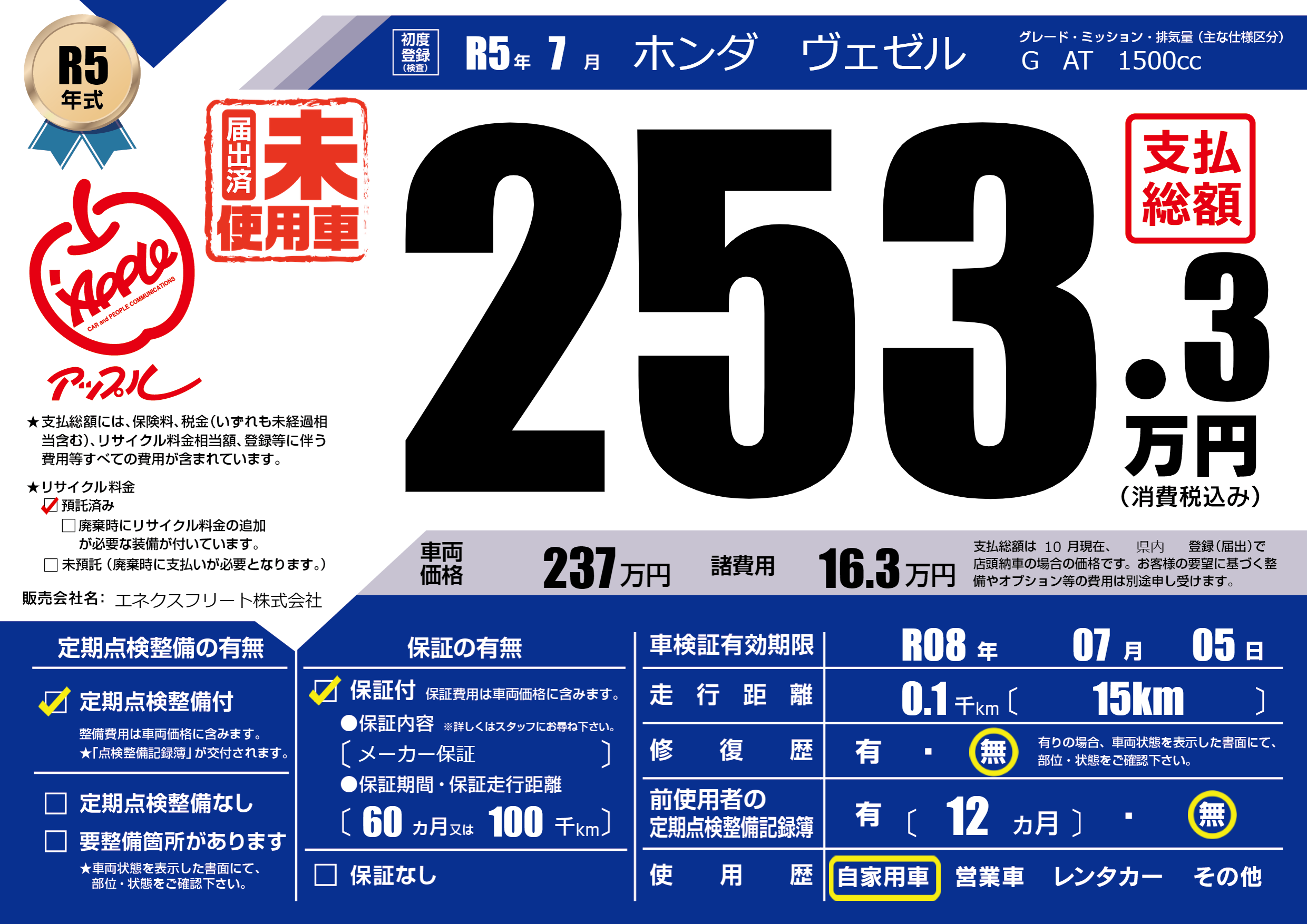 | 車名 | ホンダ ヴェゼル | グレード ミッション 排気量 |