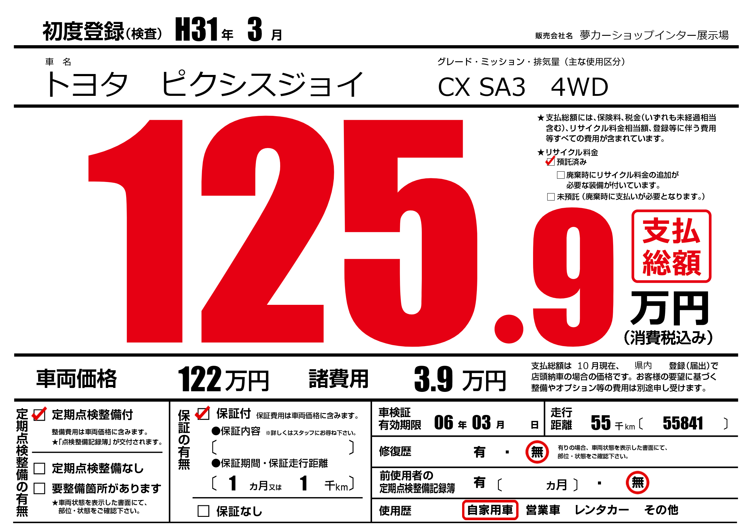 | 定期点検整備 | 定期点検整備あり | ||