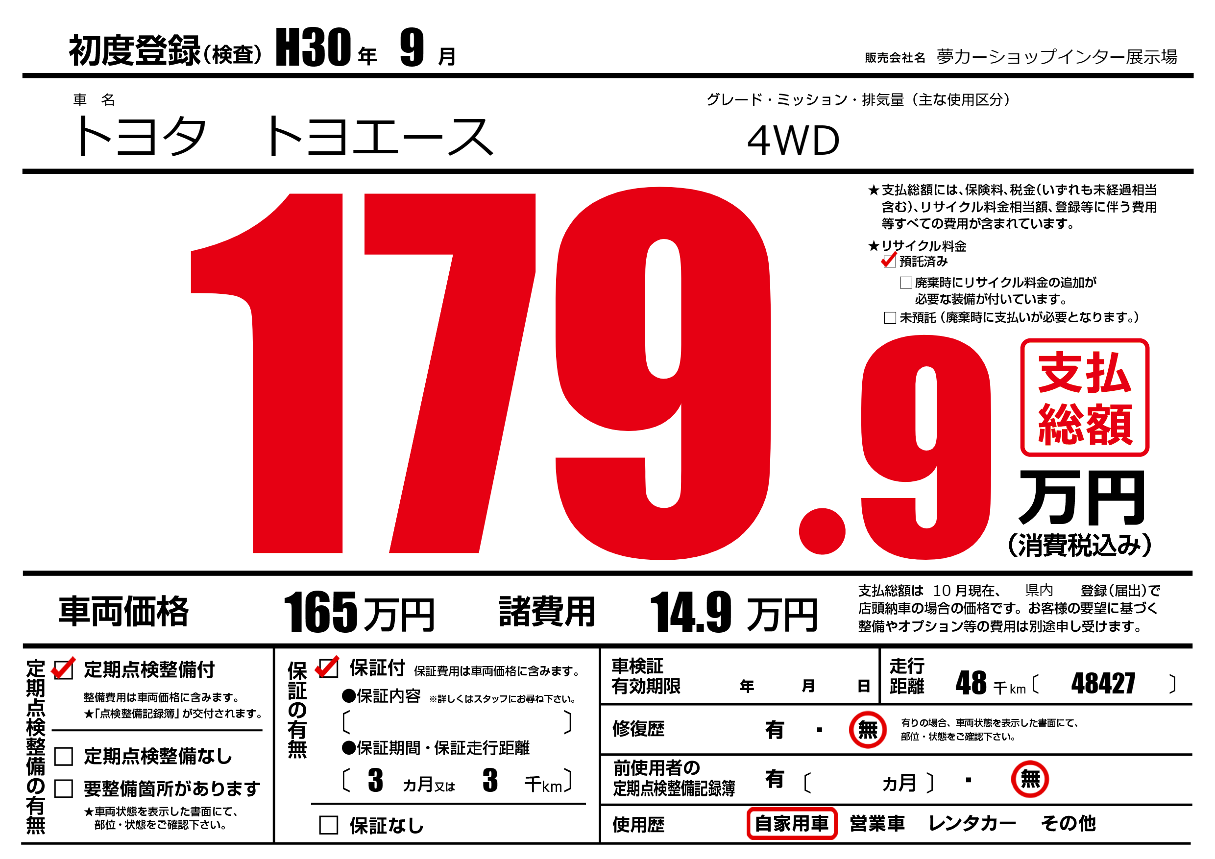 | 走行キロ | 4.8万km | 初年度登録 | H30年9月 |