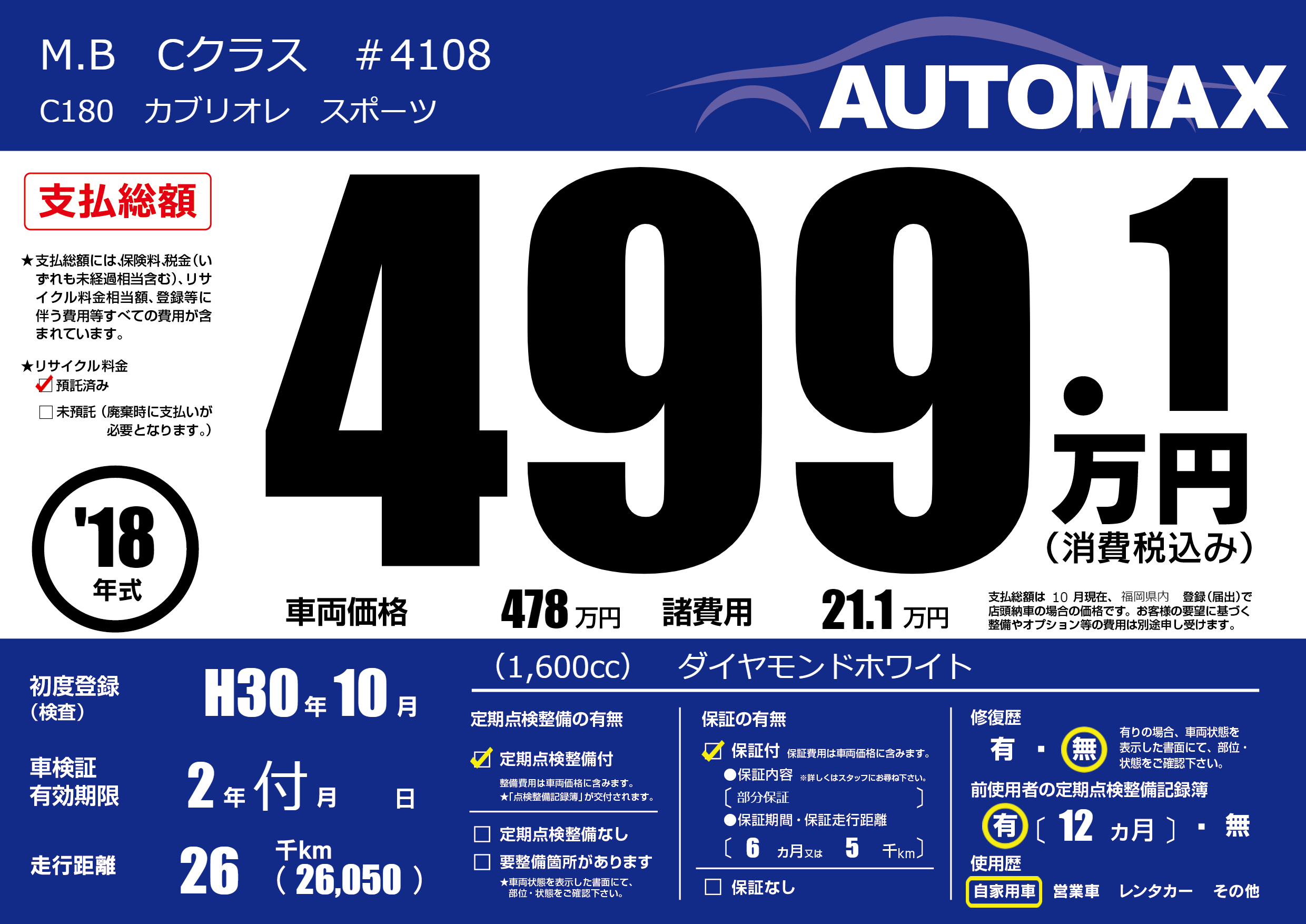 | 初年度登録 | H30年10月 | ||