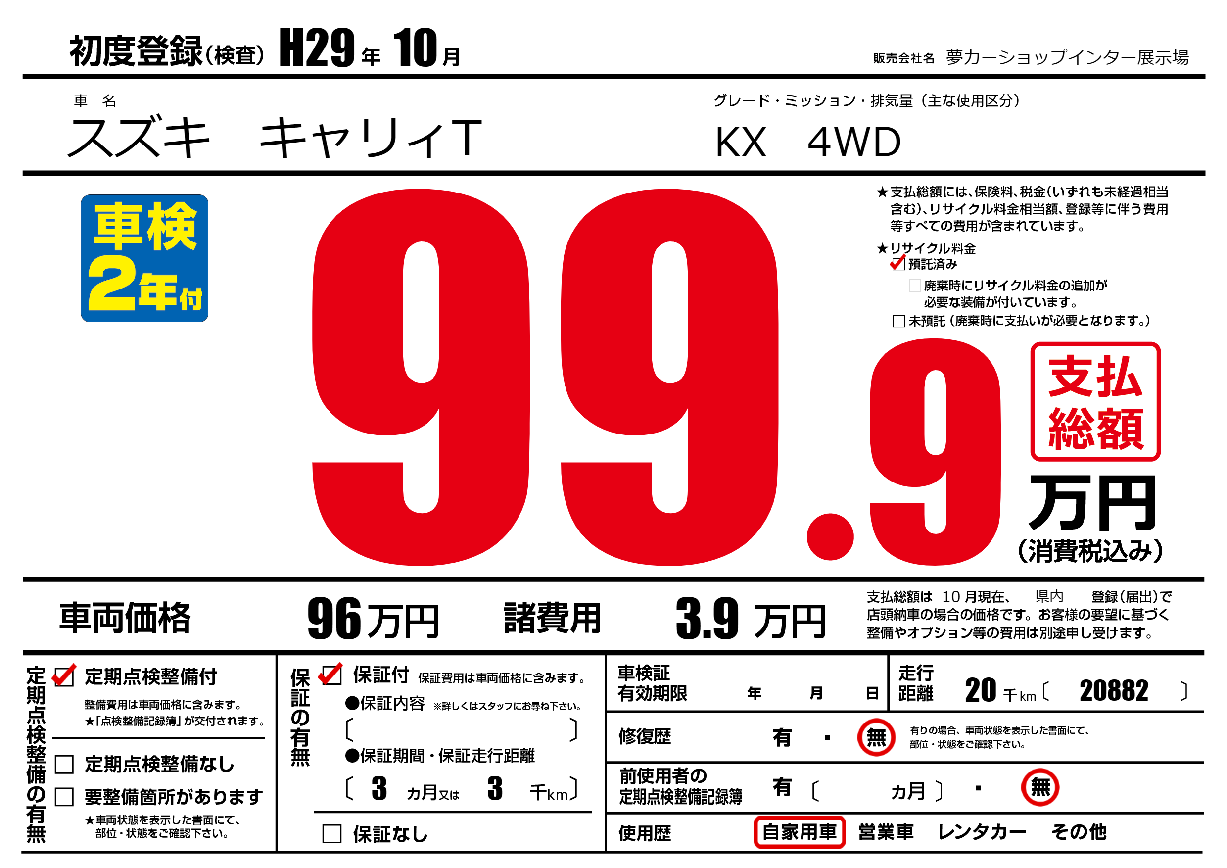 | 走行キロ | 2万km | 初年度登録 | H29年10月 |