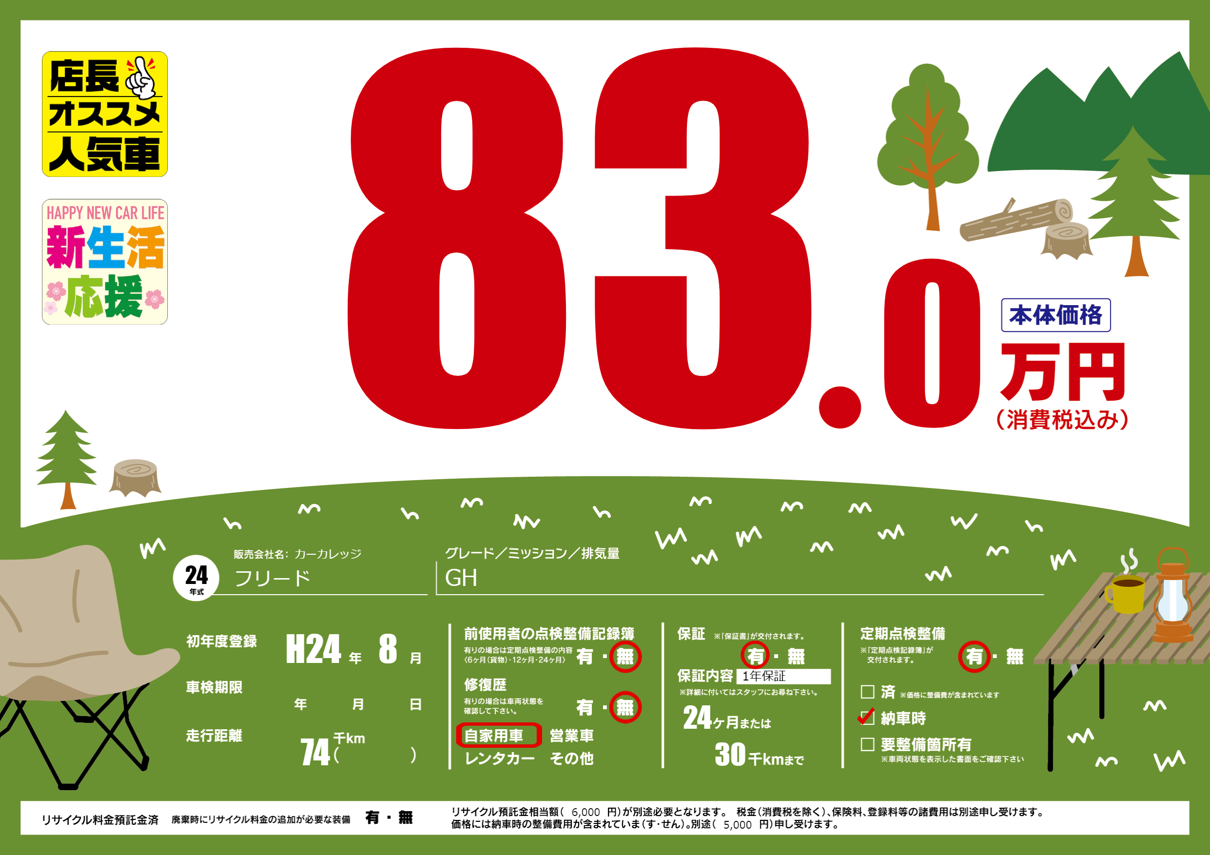 | 走行キロ | 7.4万km | 初年度登録 | H24年8月 |