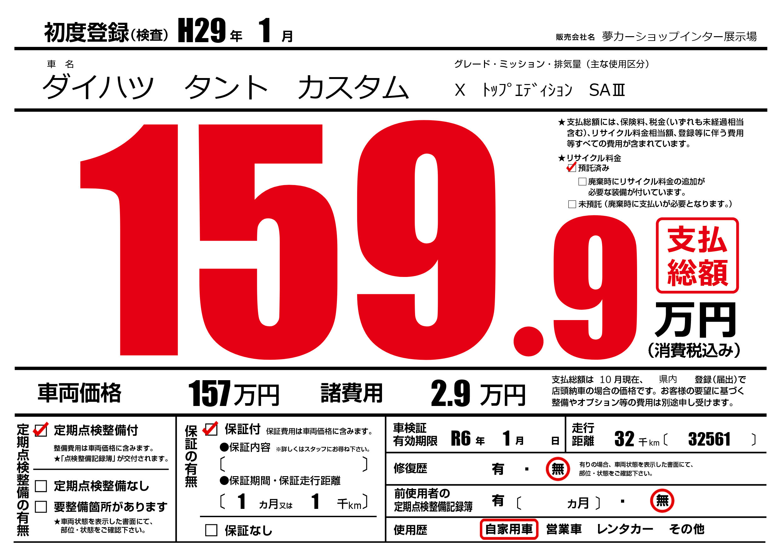 | 走行キロ | 3.2万km | 初年度登録 | H29年1月 |