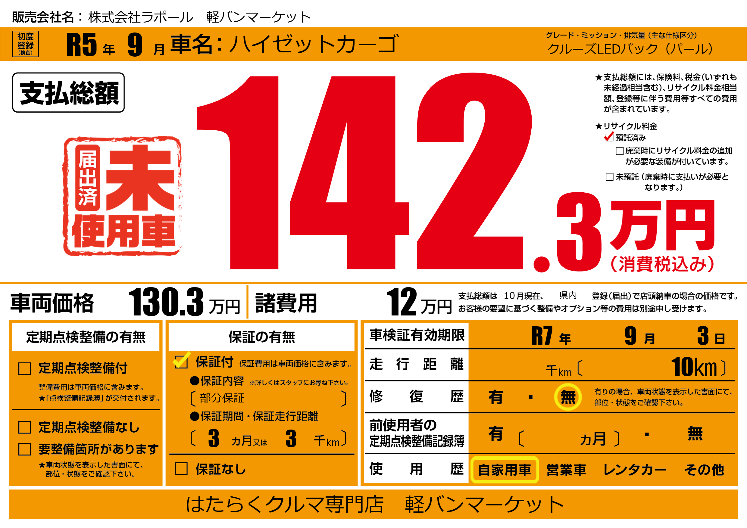 | 車検制限 | R7年 9月 3日 | ||