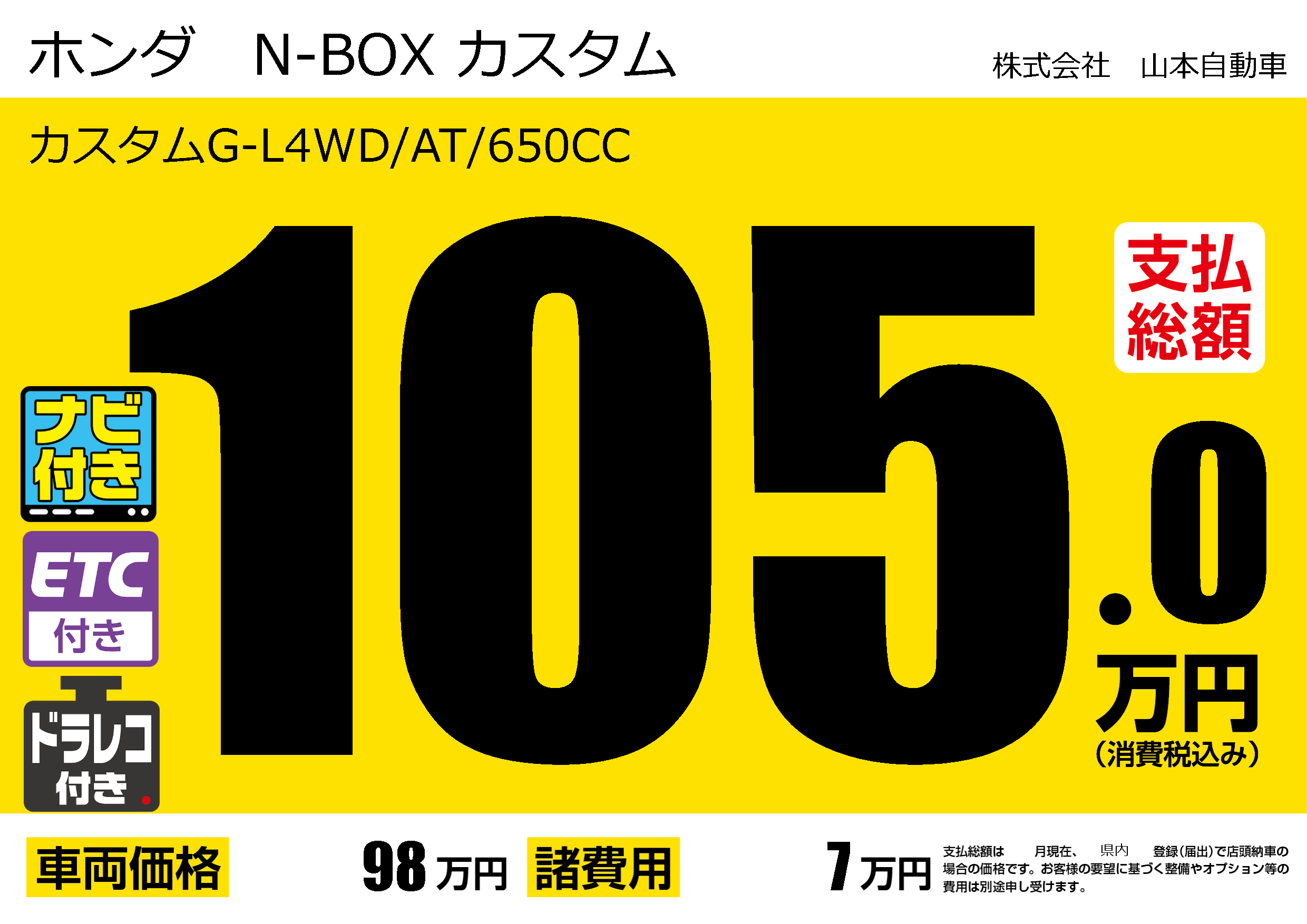 | 車名 | ホンダ N-BOX カスタム | グレード ミッション 排気量 |