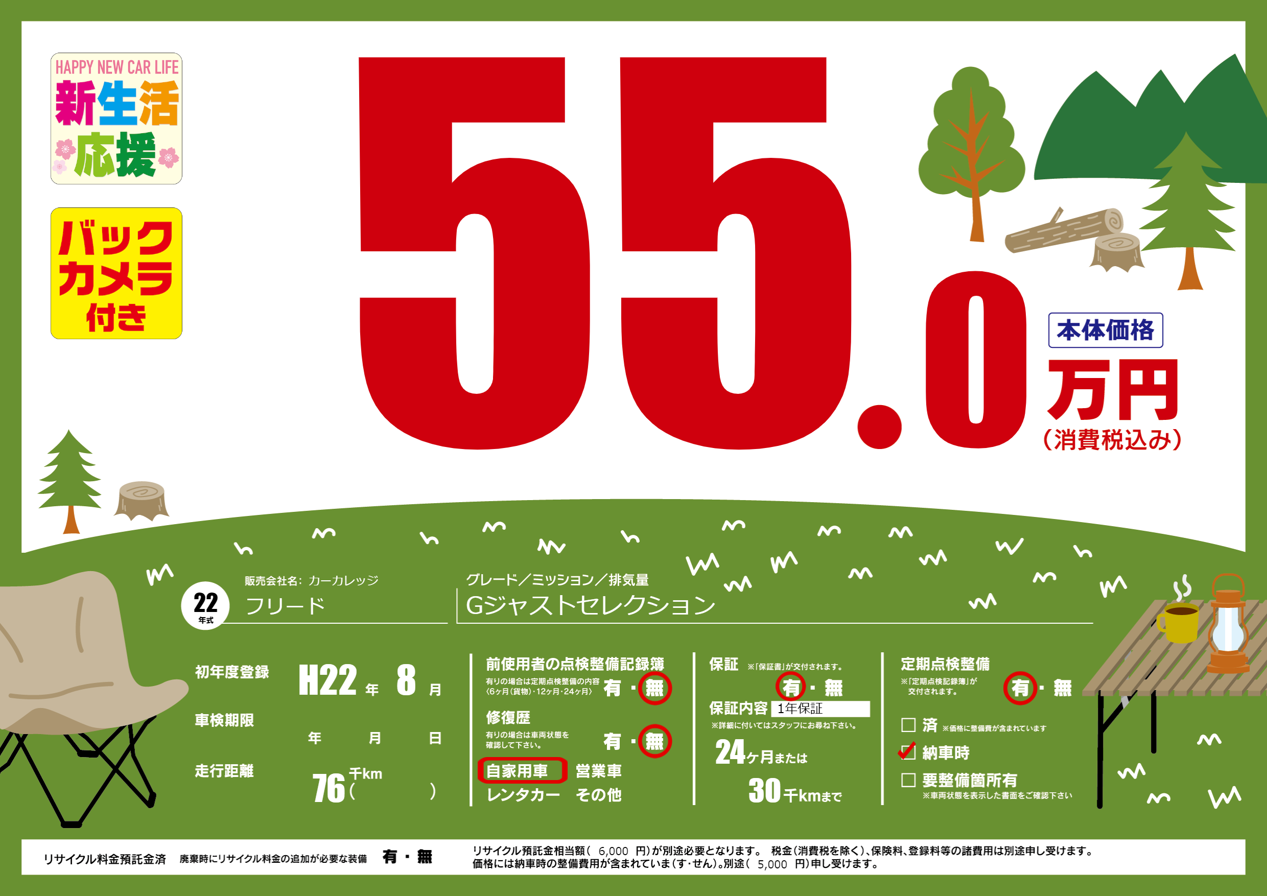 | 走行キロ | 7.6万km | 初年度登録 | H22年8月 |