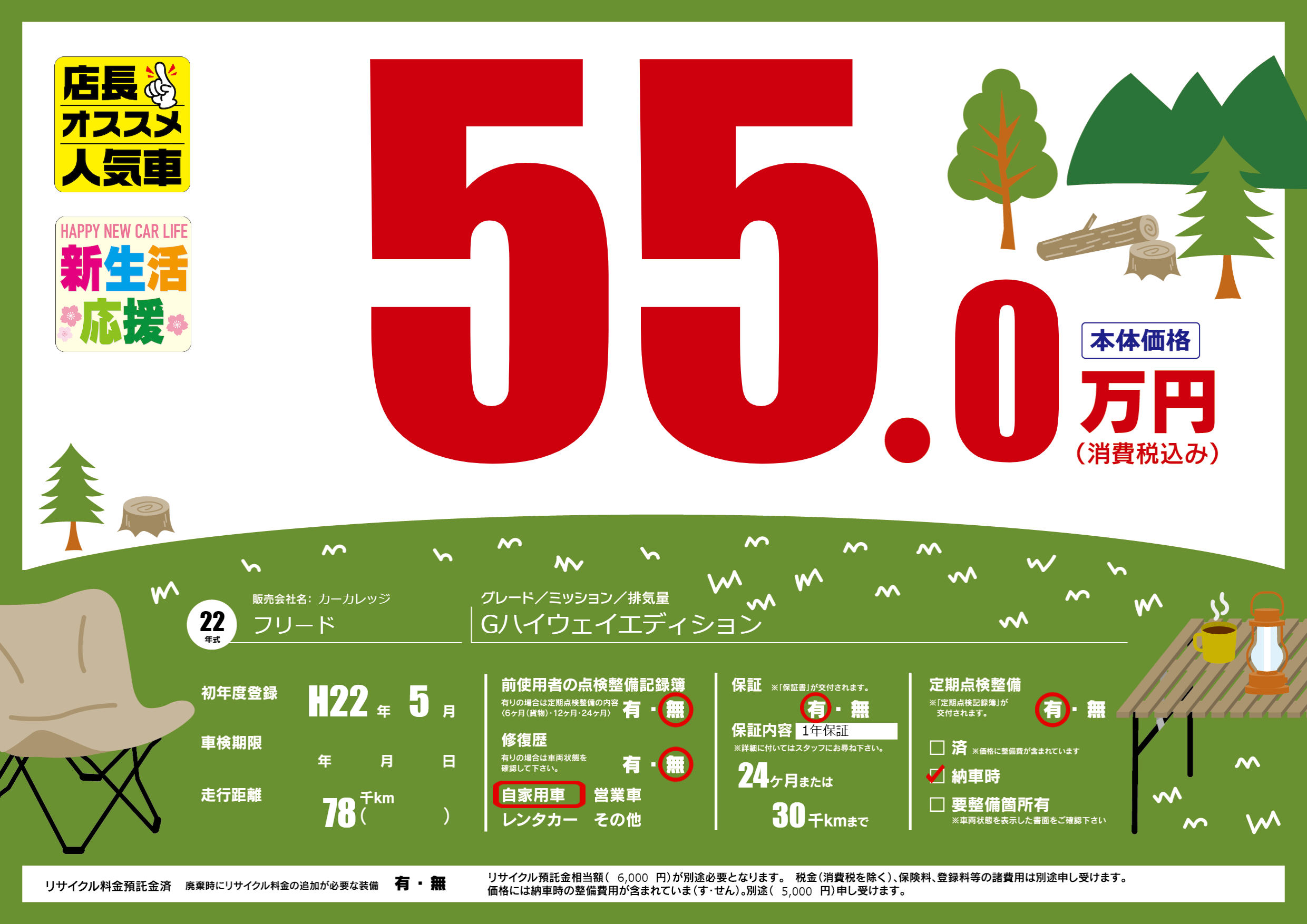 | 走行キロ | 7.8万km | 初年度登録 | H22年5月 |