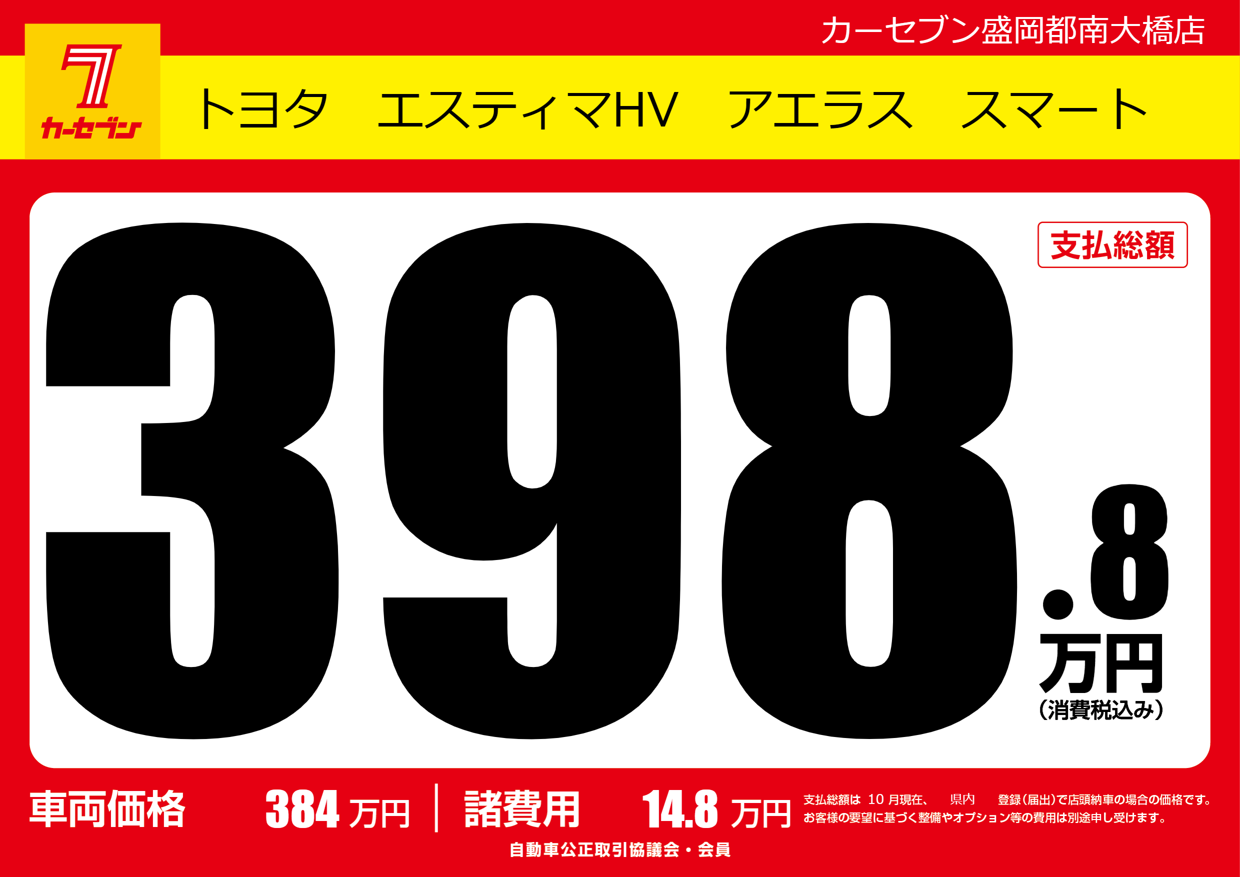 | 車名 | トヨタ エスティマHV アエラス スマート | グレード ミッション 排気量 |
