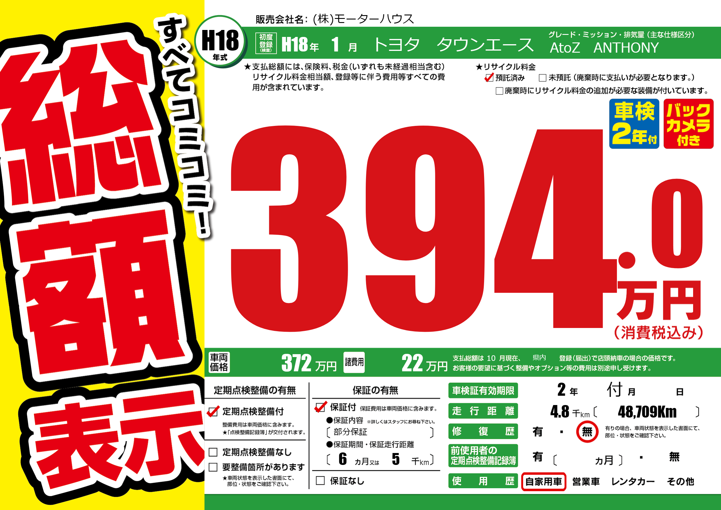 | 定期点検整備 | 定期点検整備あり | ||