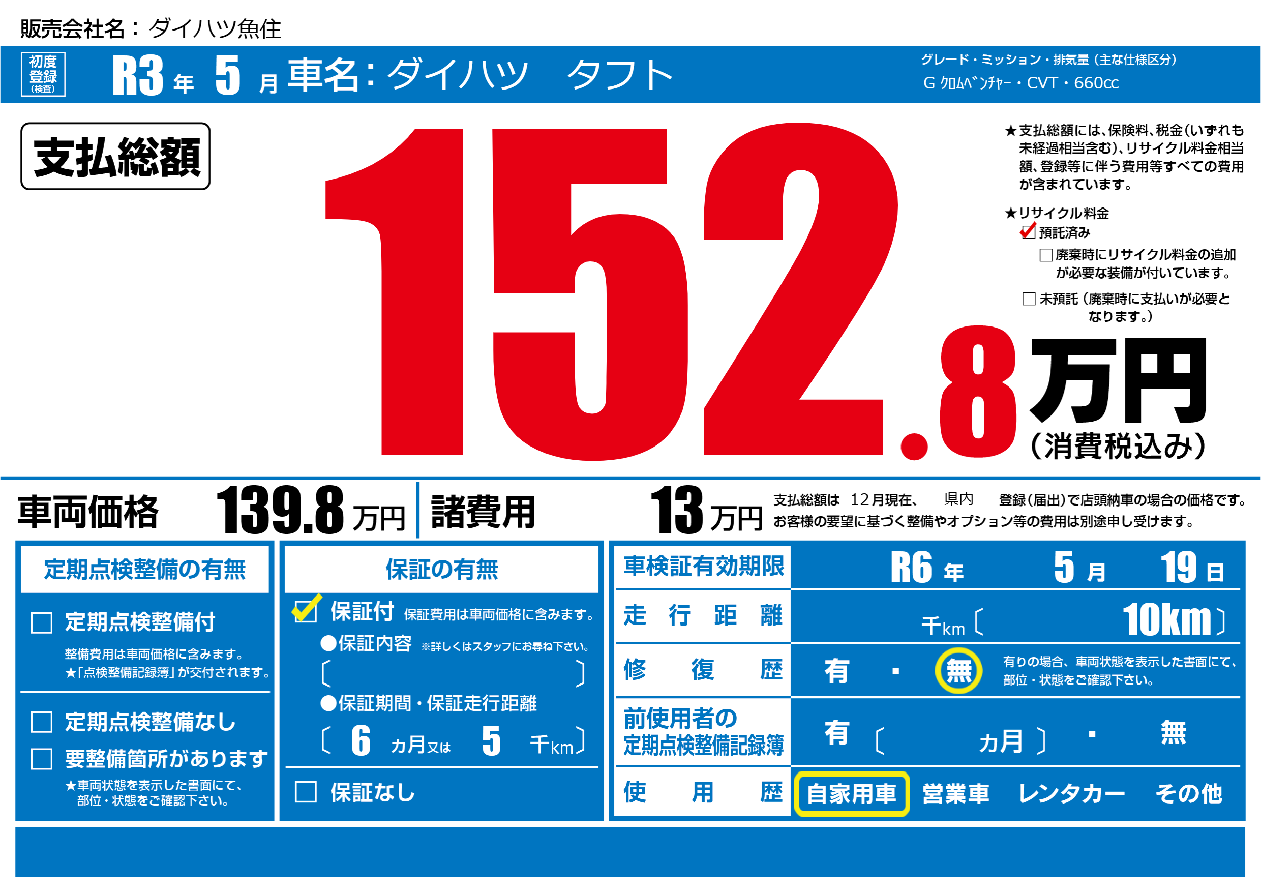 | 走行キロ | - | 初年度登録 | R3年5月 |