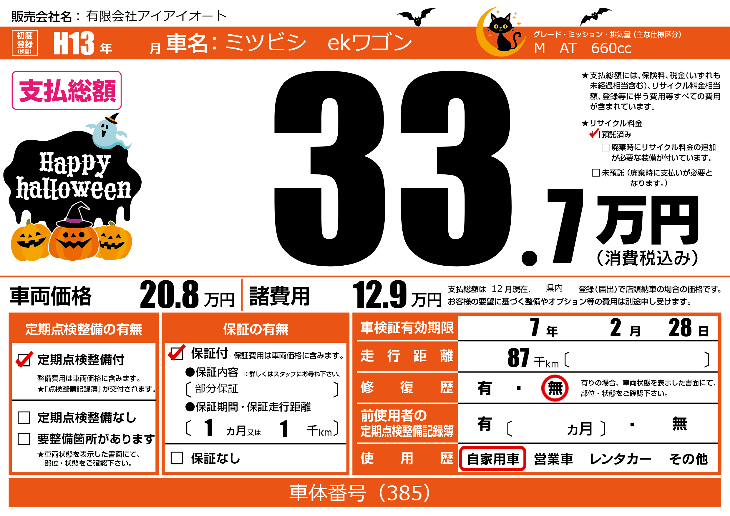 | 車検制限 | 7年 2月 28日 | ||