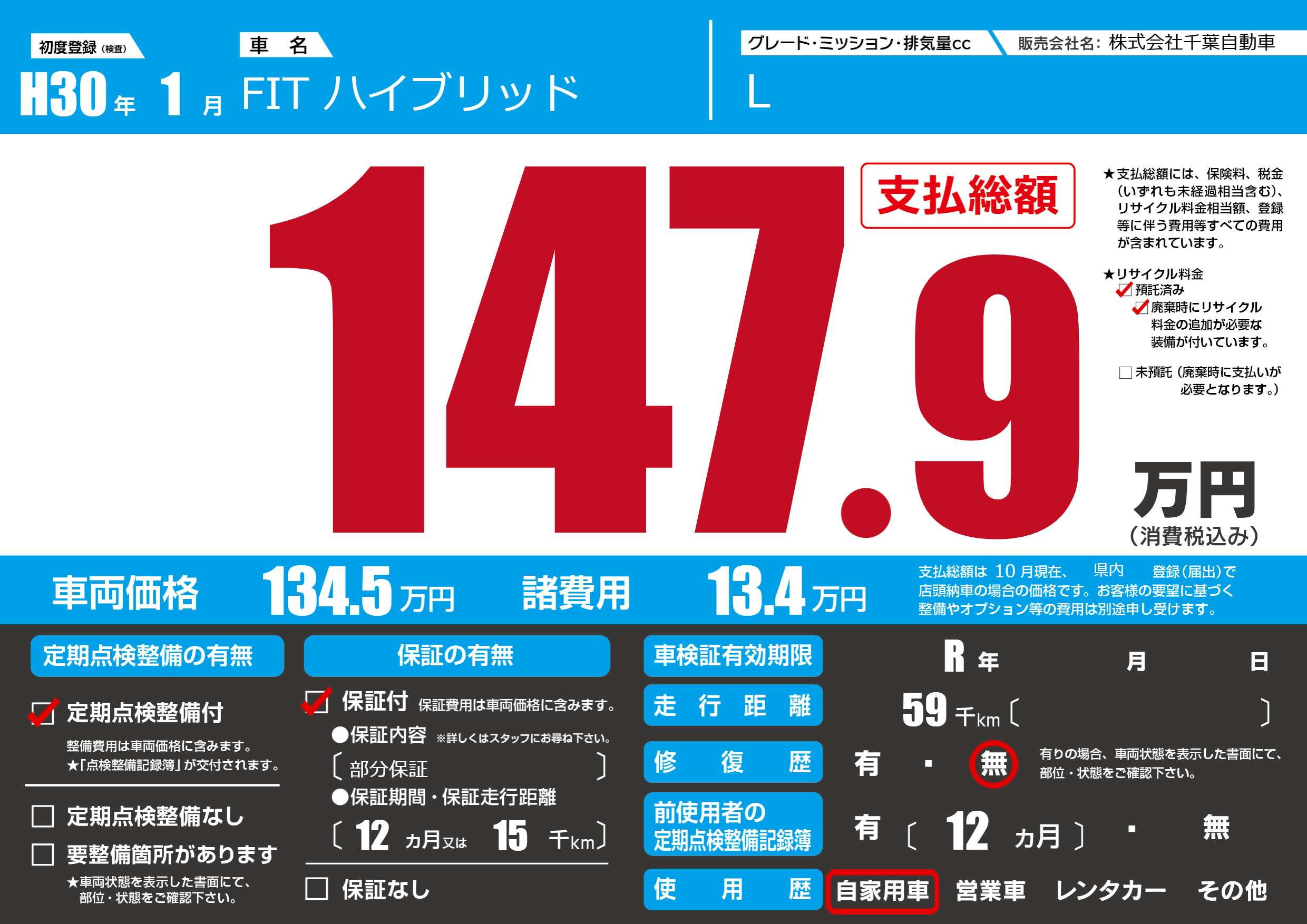 なし | 車検制限 | R年---月---月 |