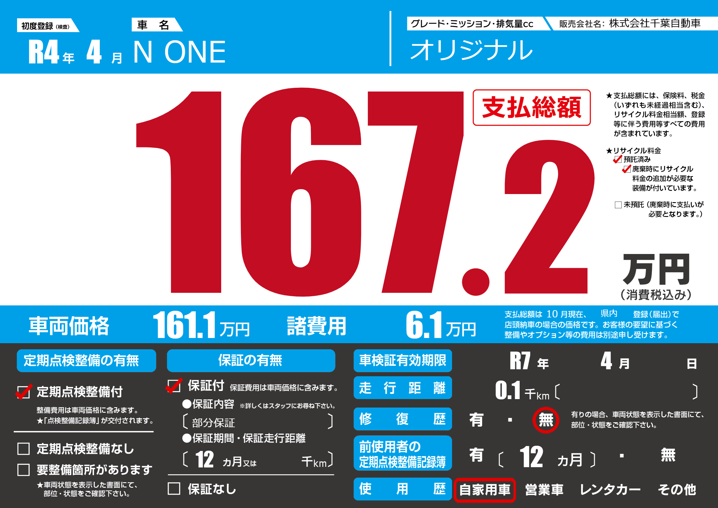 なし | 車検制限 | R7年4月---月 |
