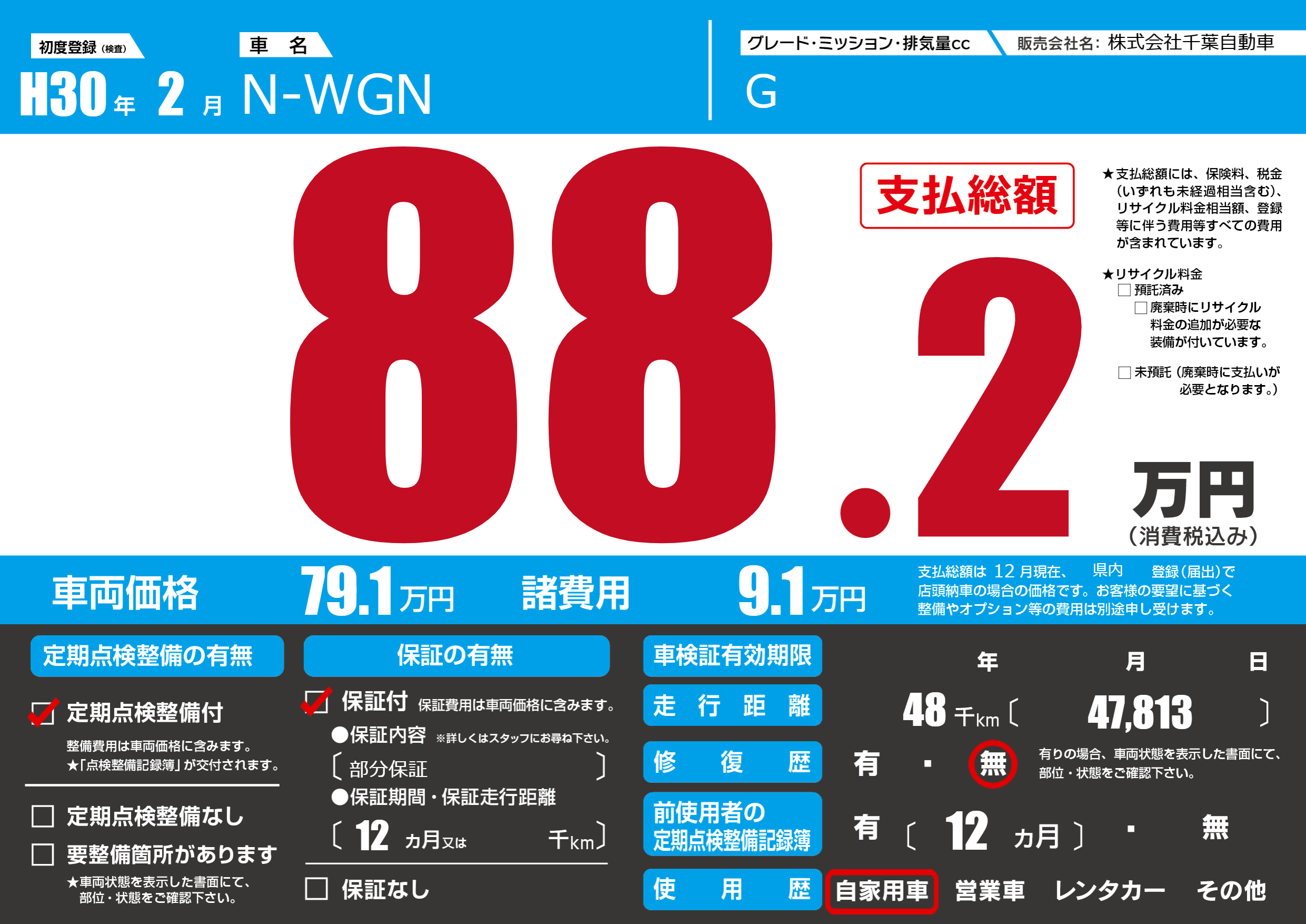 | 車名 | N-WGN | グレード ミッション 排気量 |