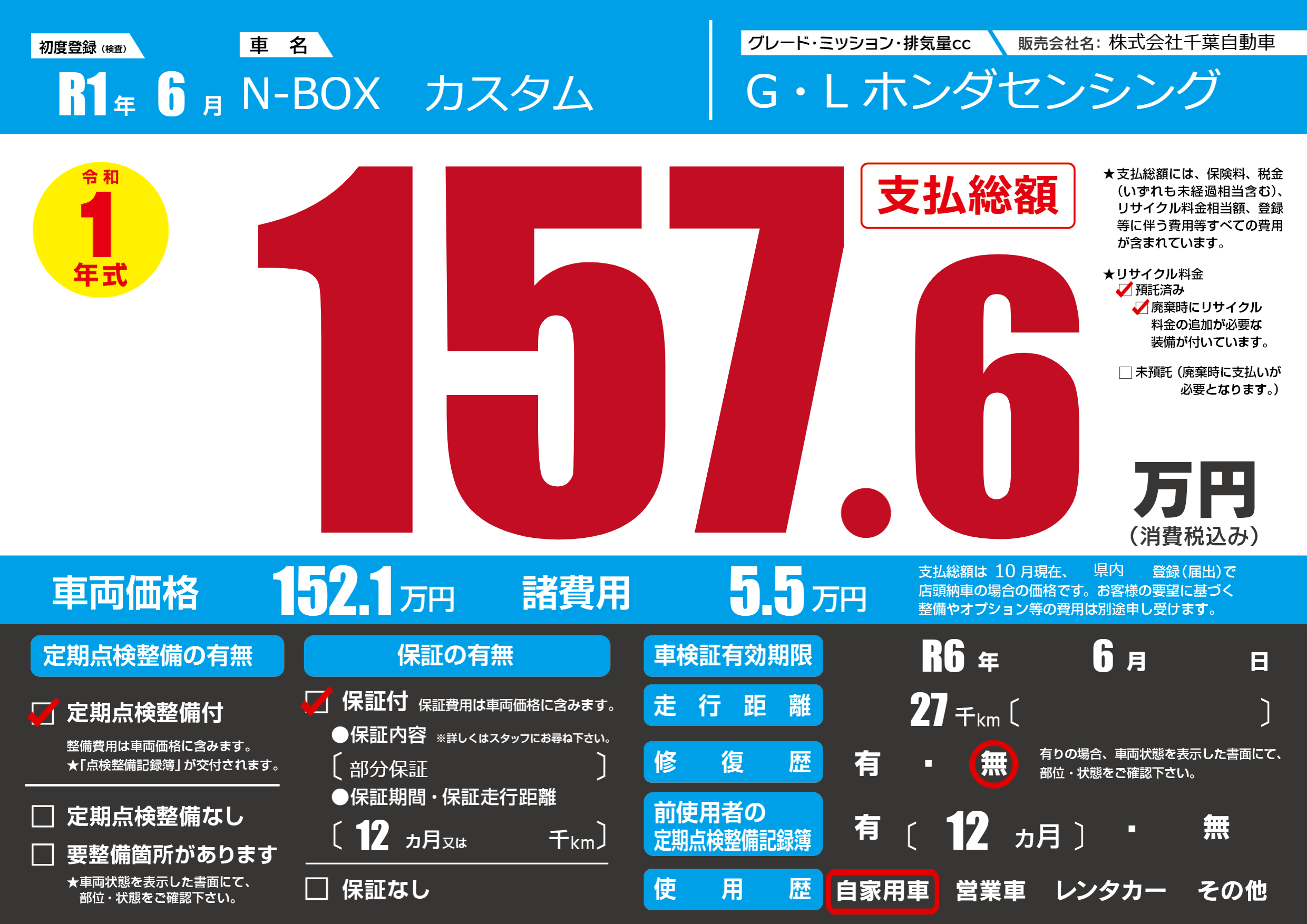 | 走行キロ | 2.7万km | 初年度登録 | R1年6月 |