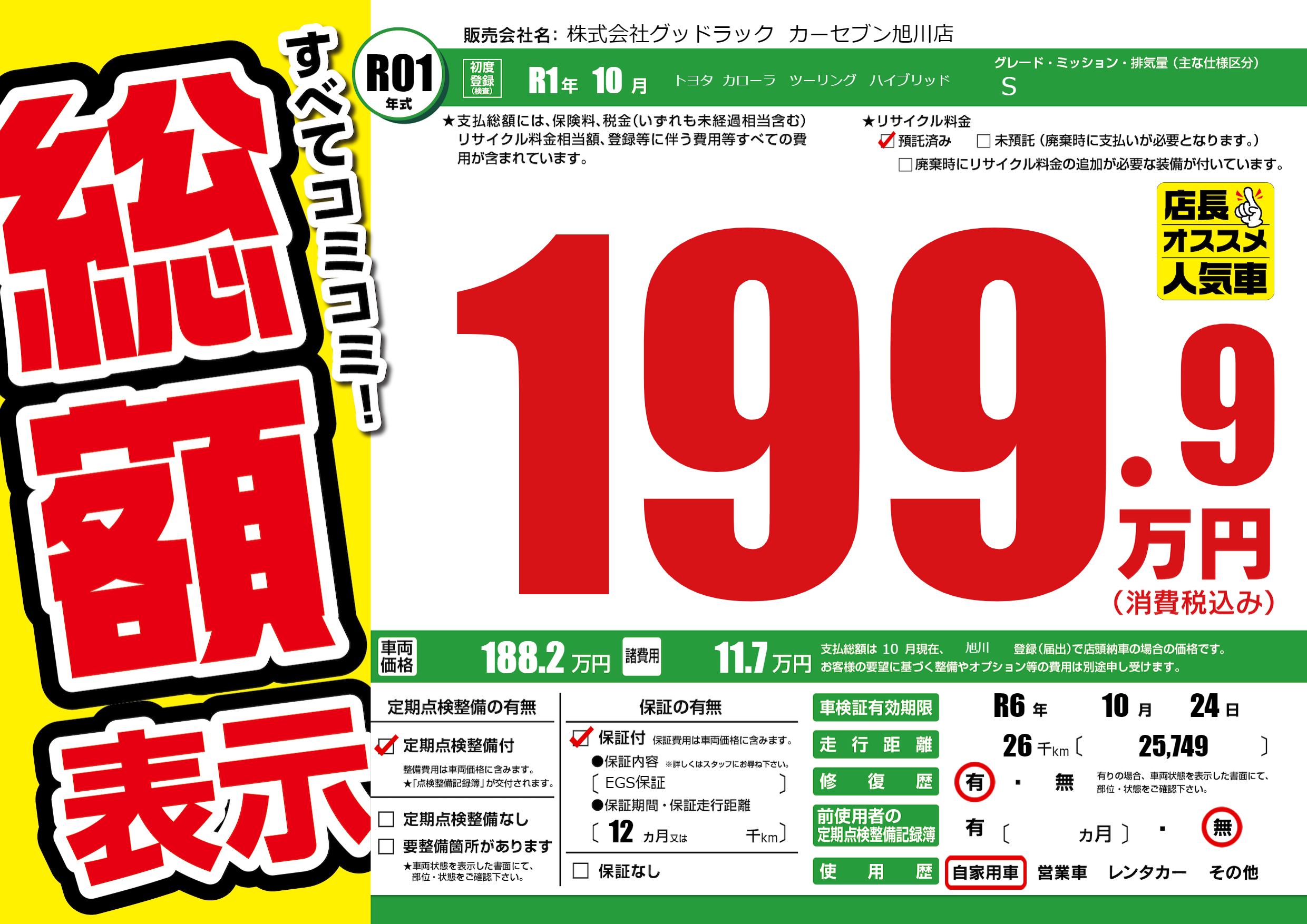 | 車名 | トヨタ カローラ ツーリング ハイブリッド | グレード ミッション 排気量 |
