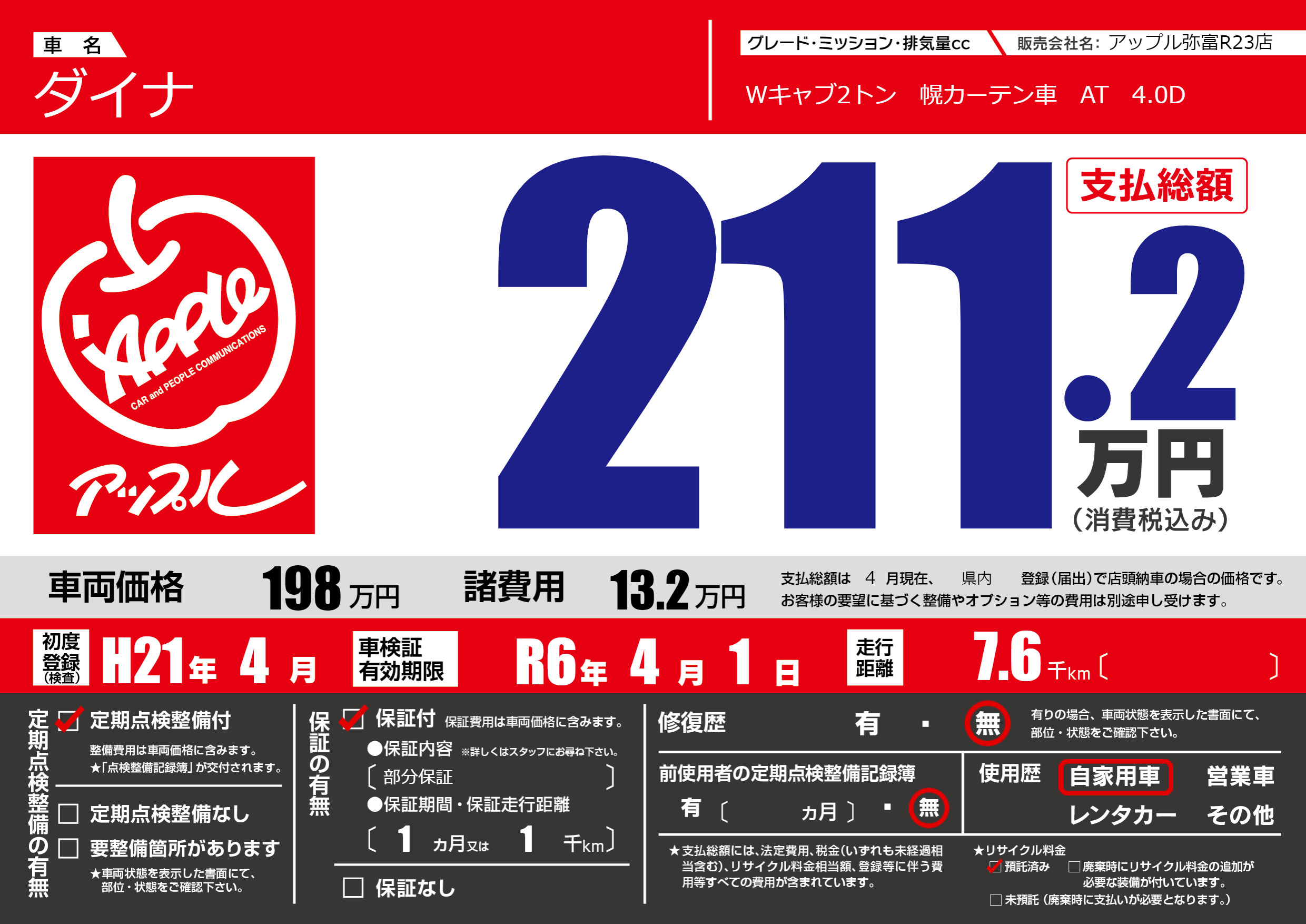 | 車名 | ダイナ | グレード ミッション 排気量 |