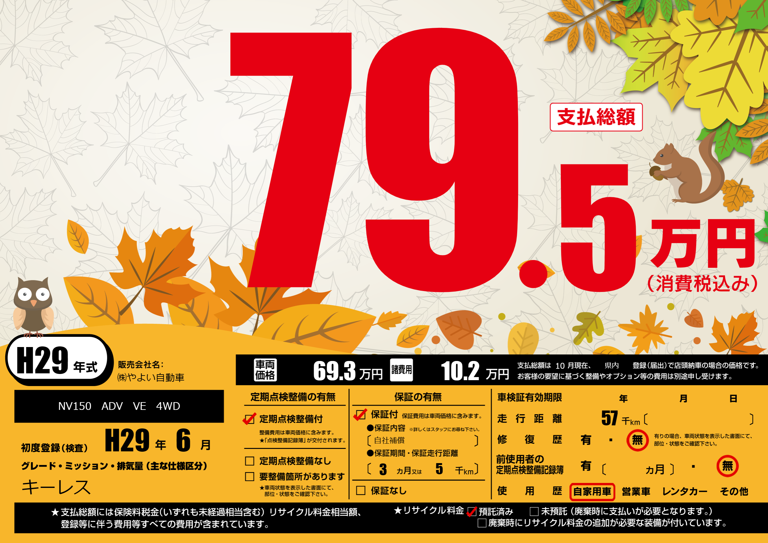 | 車名 | NV150 ADV VE 4WD | グレード ミッション 排気量 |