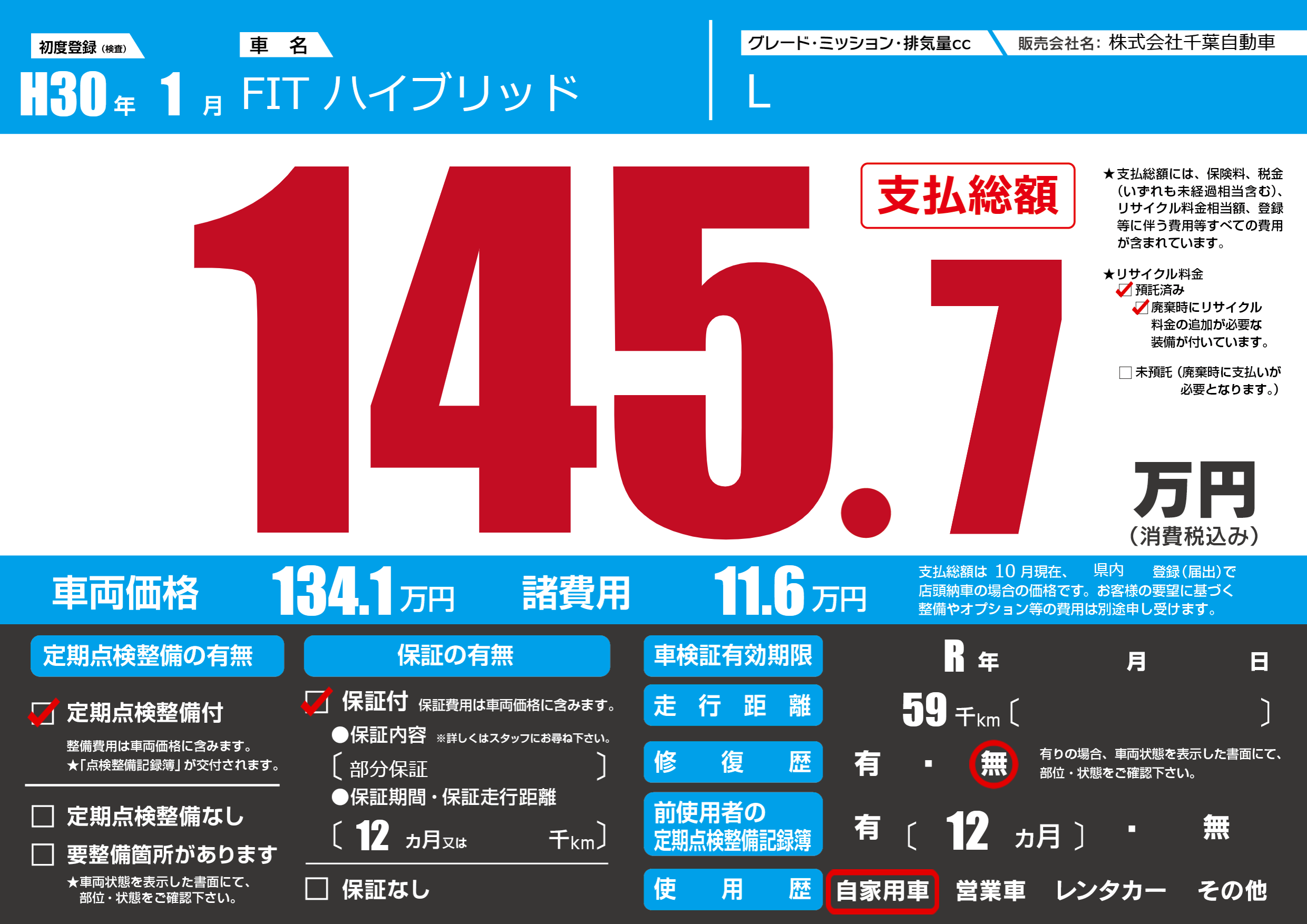 なし | 車検制限 | R年---月---月 |
