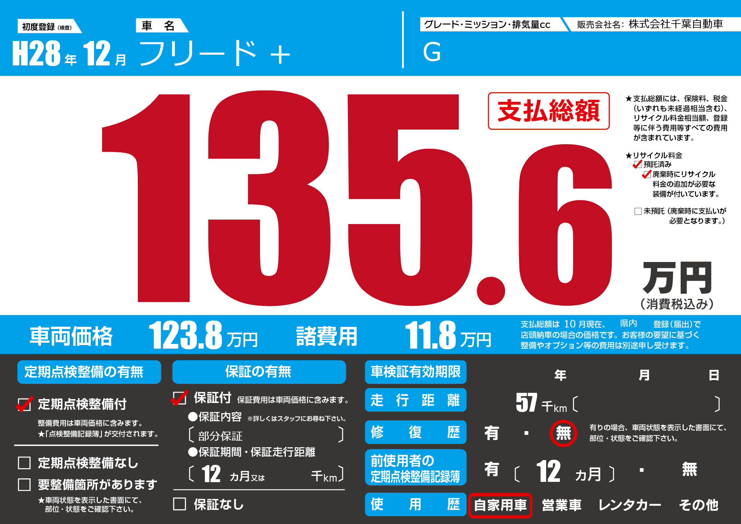 | 走行キロ | 5.7万km | 初年度登録 | H28年12月 |