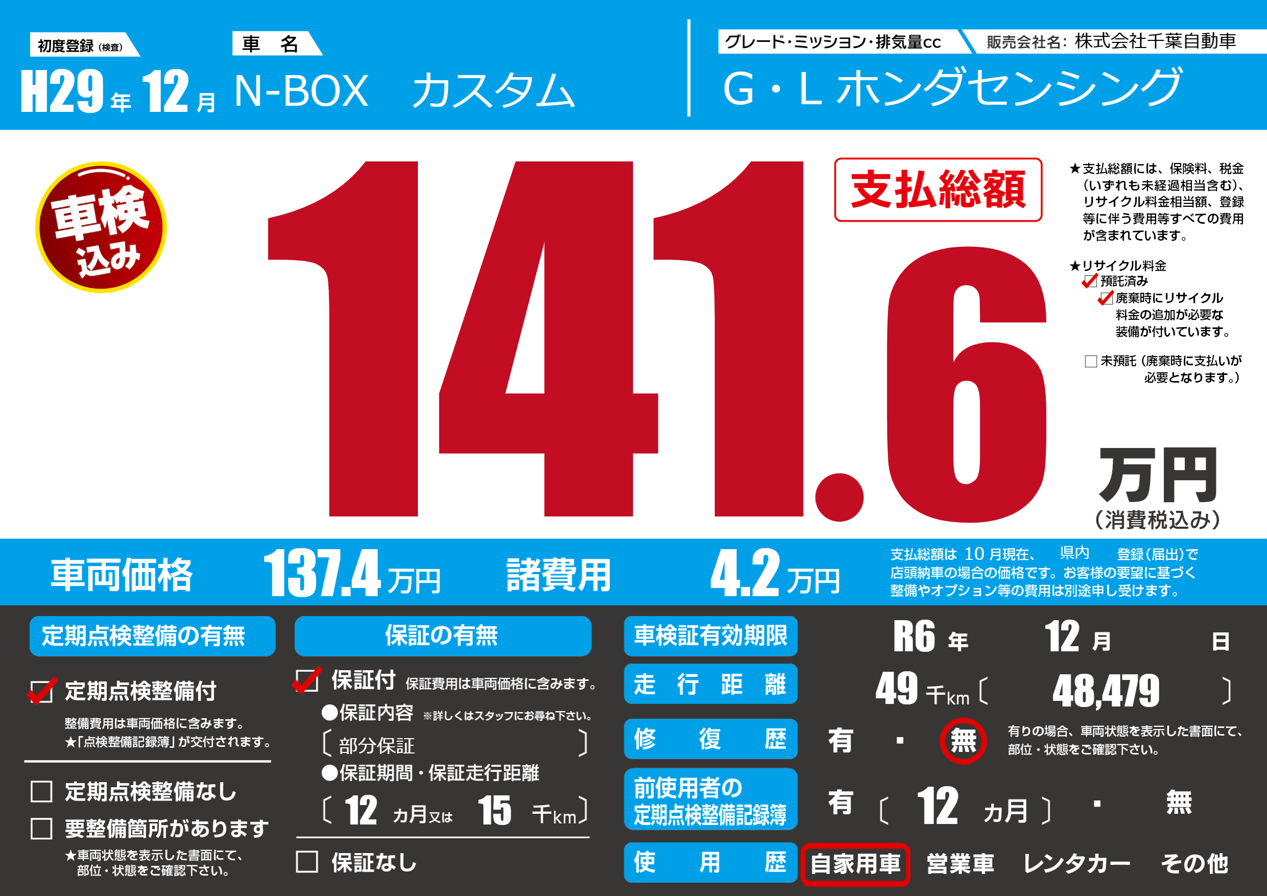 | 車検制限 | R6年 12月 - 日 | ||