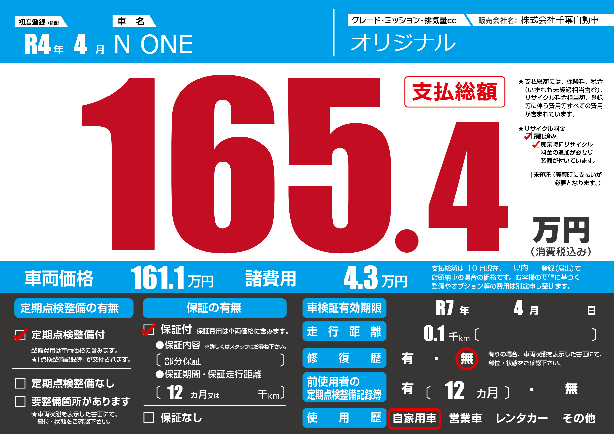 | 車名 | N ONE | グレード ミッション 排気量 |
