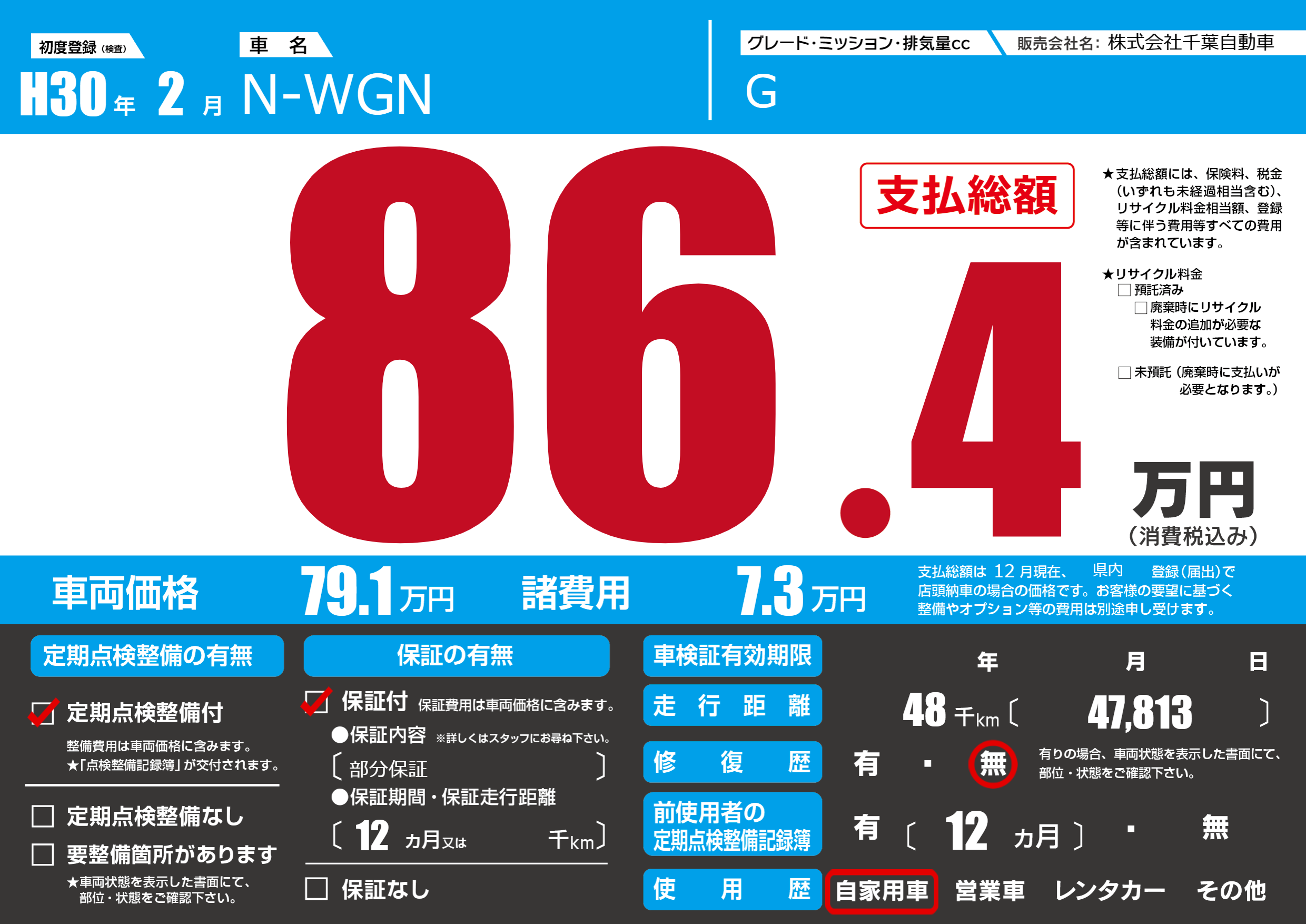 | 車名 | N-WGN | グレード ミッション 排気量 |