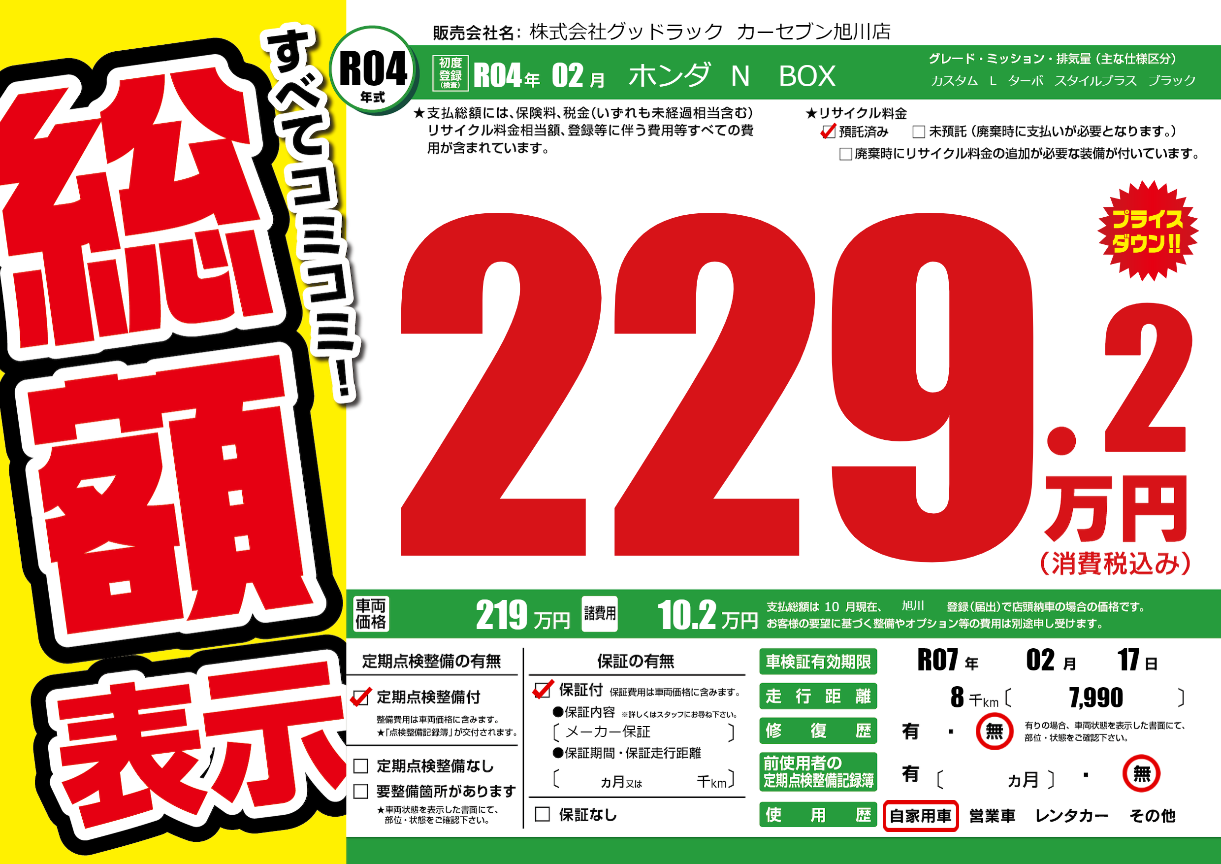 | 車検制限 | R07年 02月 17日 | ||