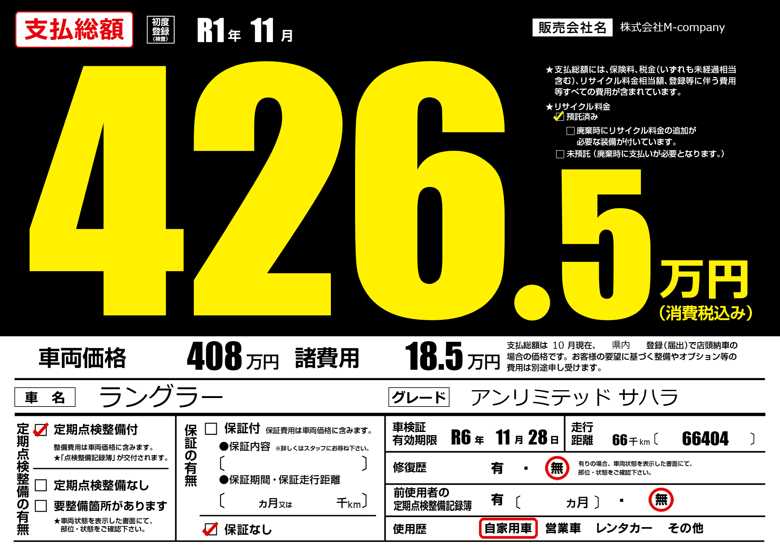 なし | 車検制限 | R6年11月28月 |