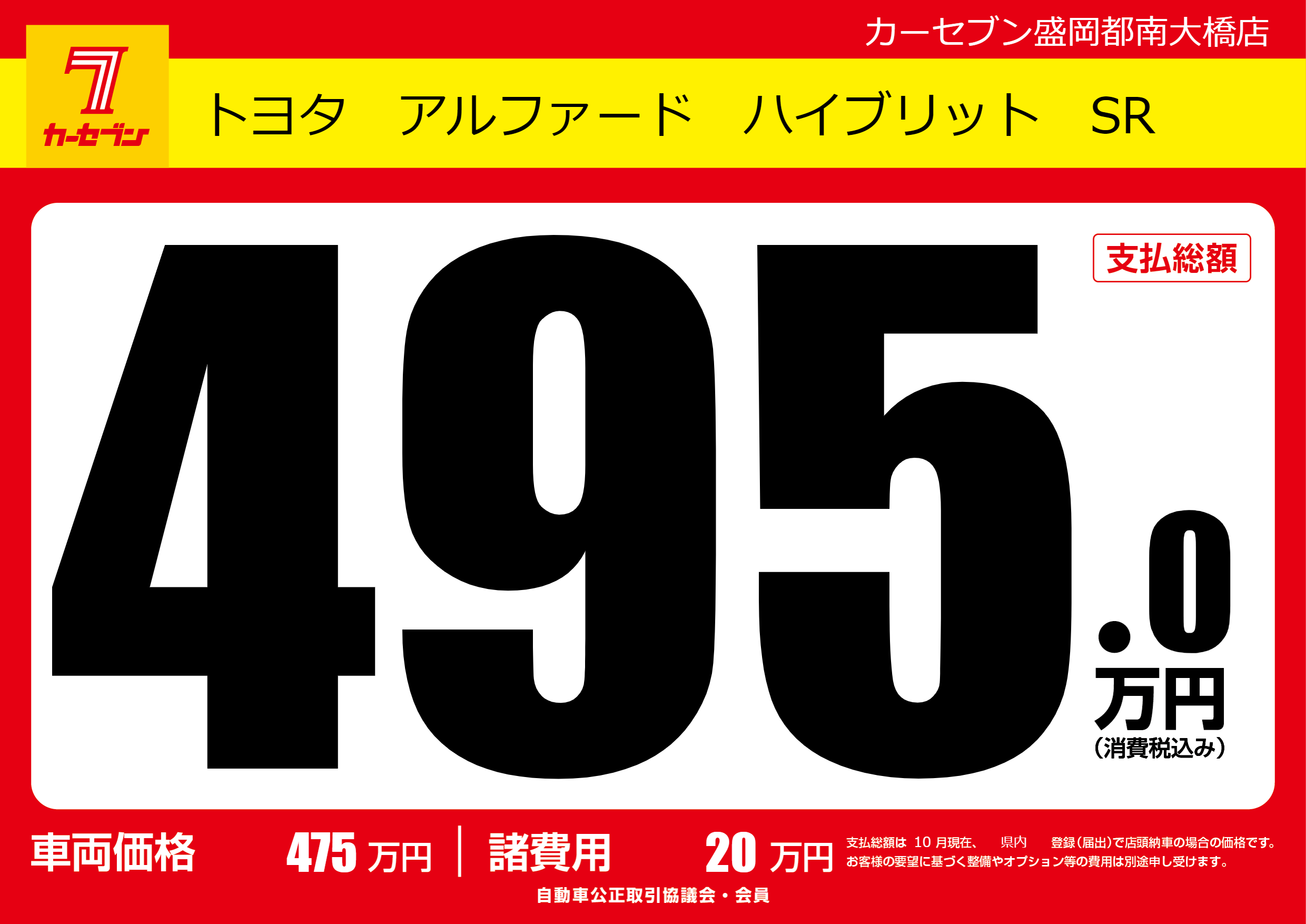 | 車名 | トヨタ アルファード ハイブリット SR | グレード ミッション 排気量 |